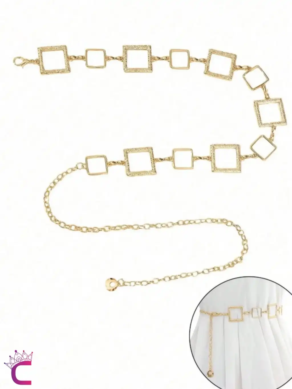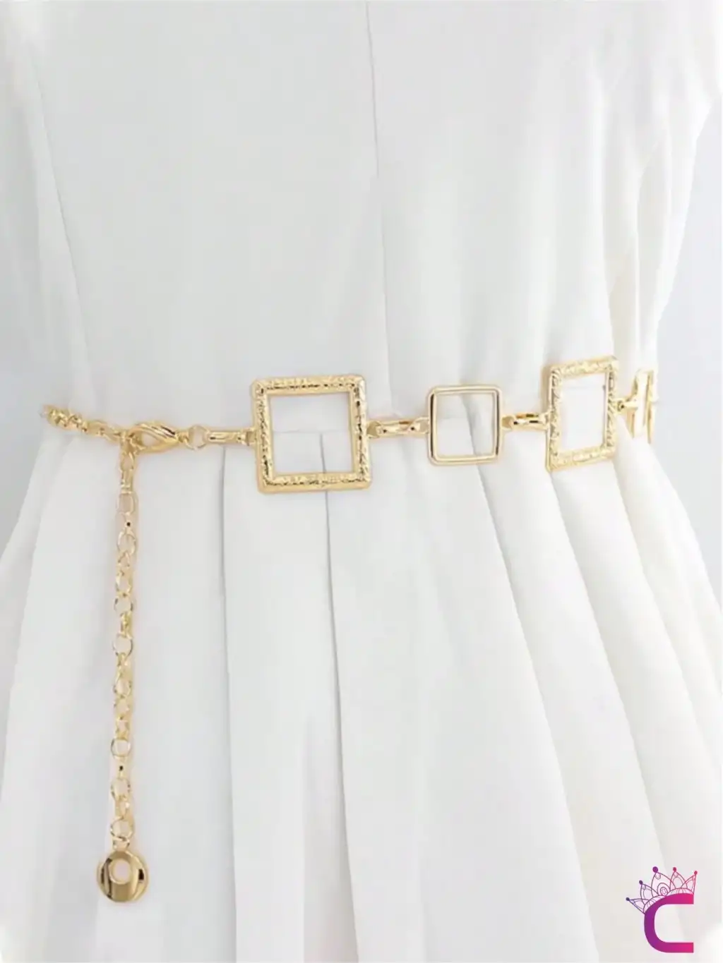 Ayarlanabilir Metal Kare Gold Bel Zinciri Kemeri - Elbise Kot Pantolon Etek Vücut Takısı Kolyesi