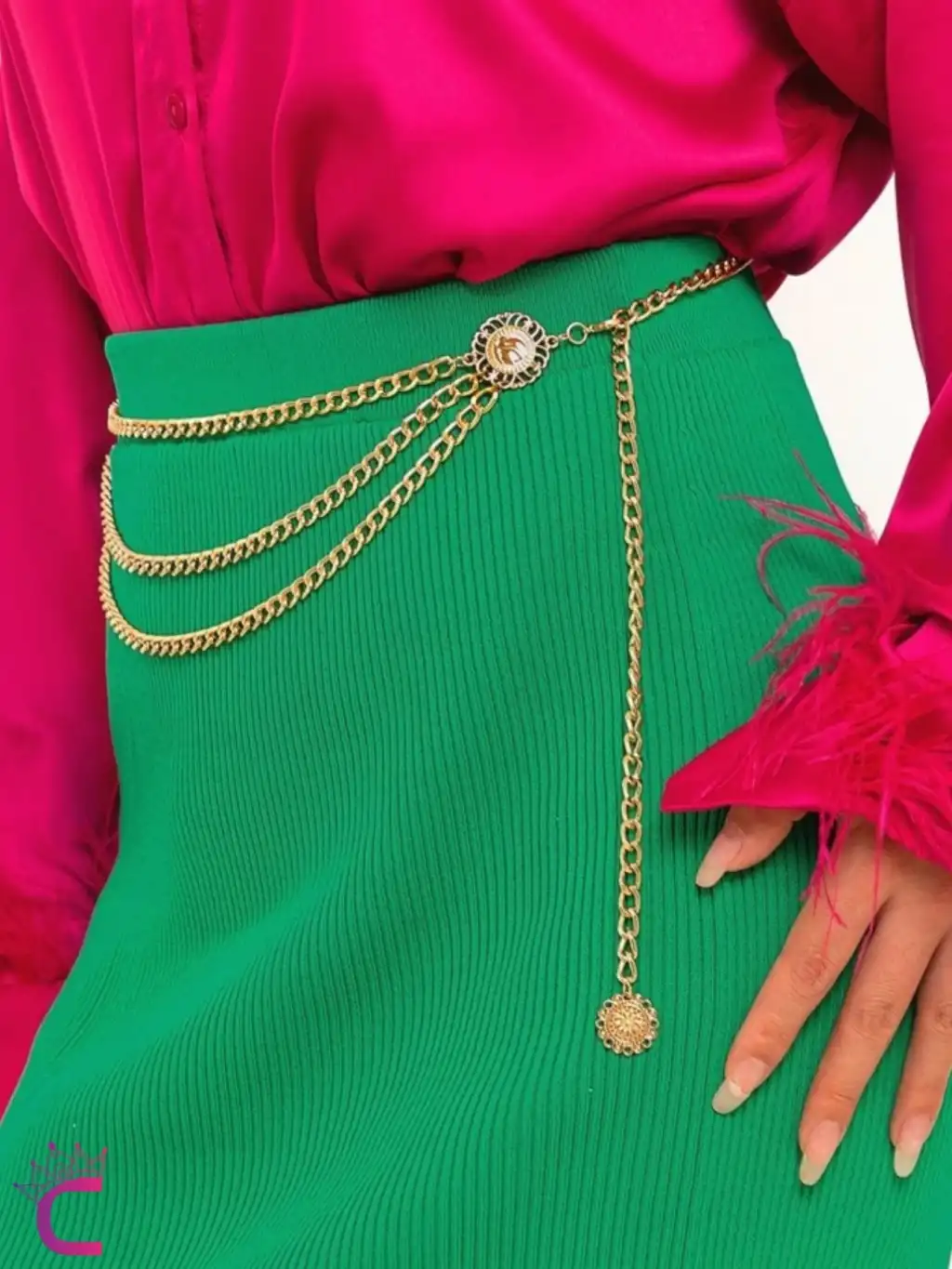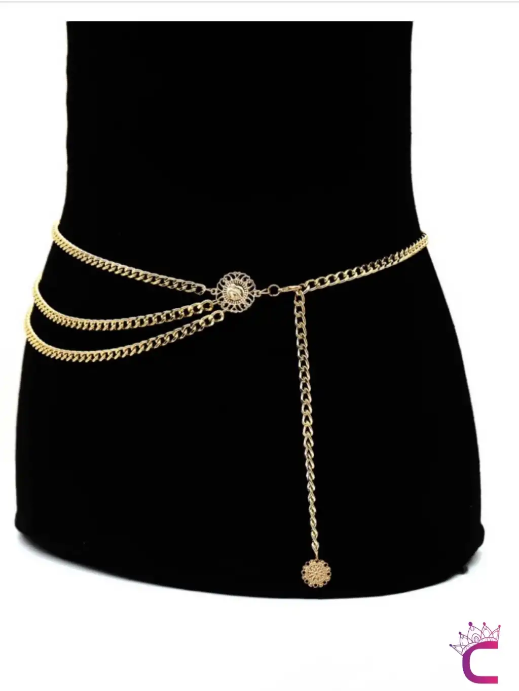 - Zarif tasarımıyla dikkat çeken ayçiçekli İconlu Gold Bel Zinciri, yetişkin kadınların şıklığını tamamlar.