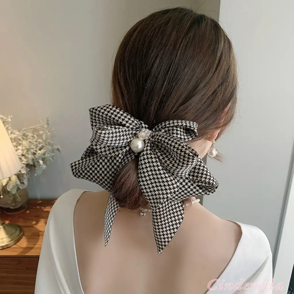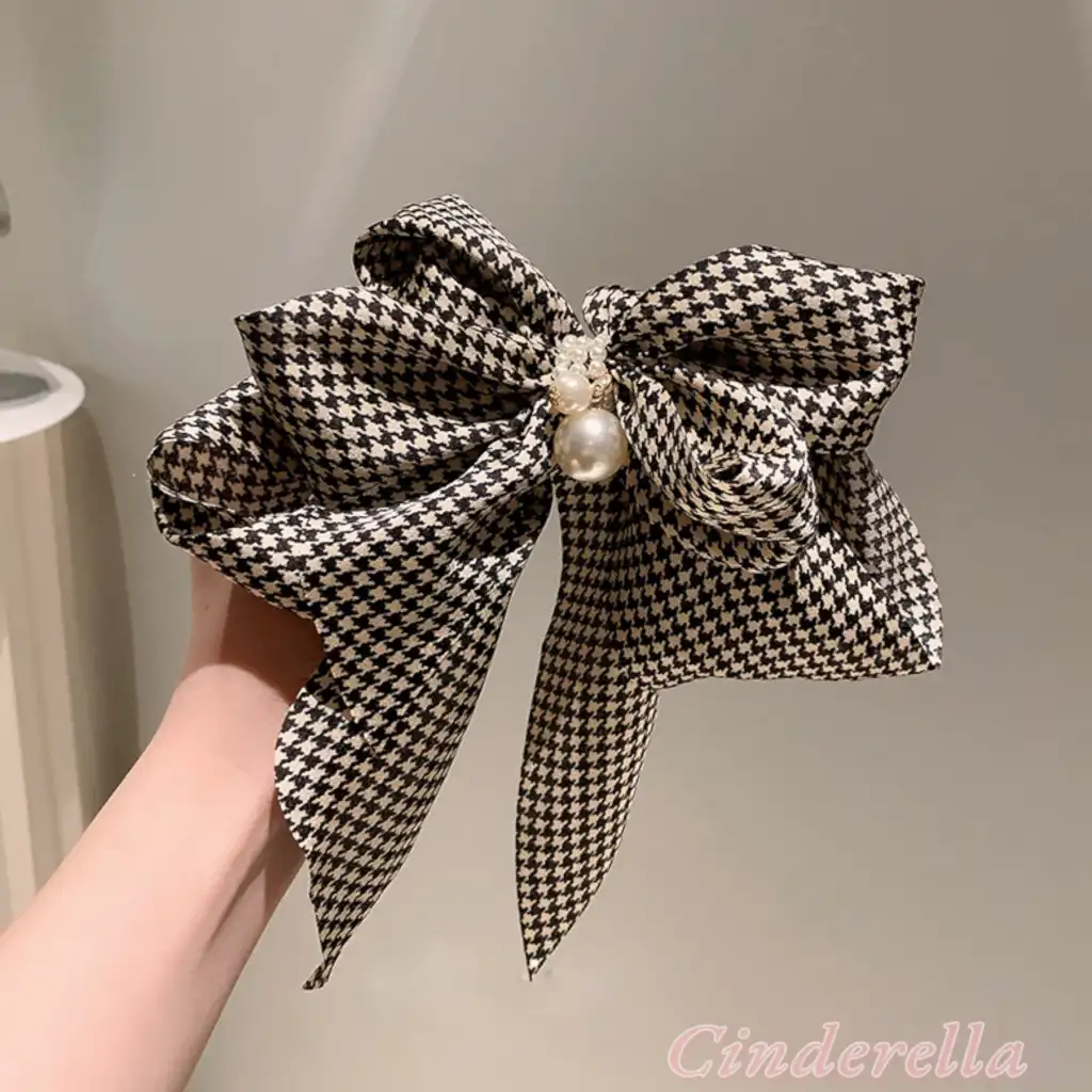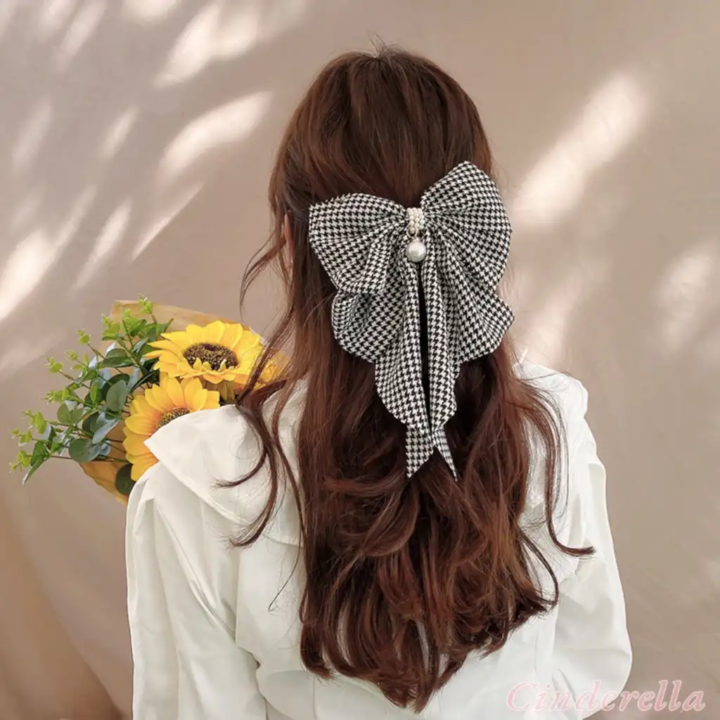 Balıksırtı Desenli İncili Taşlı Zarif Fiyonk Otomatik Toka - Yeni Sezon Fiyonklu Klipsli Saç Tokası