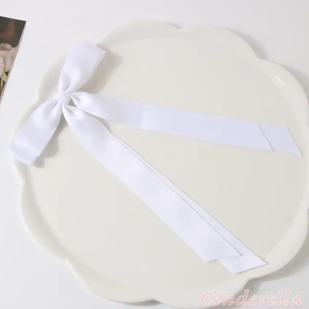 Beyaz Çift Kuyruklu Fiyon Model Pens Toka - Kurdele Fiyonklu Klipsli Pens Saç Tokası