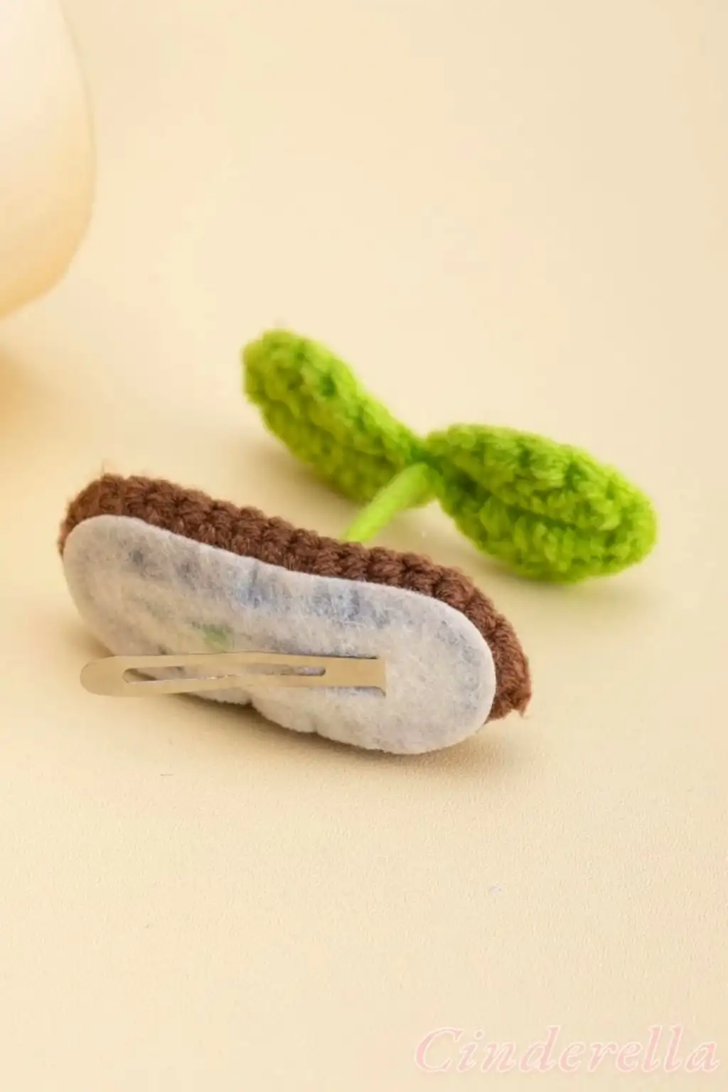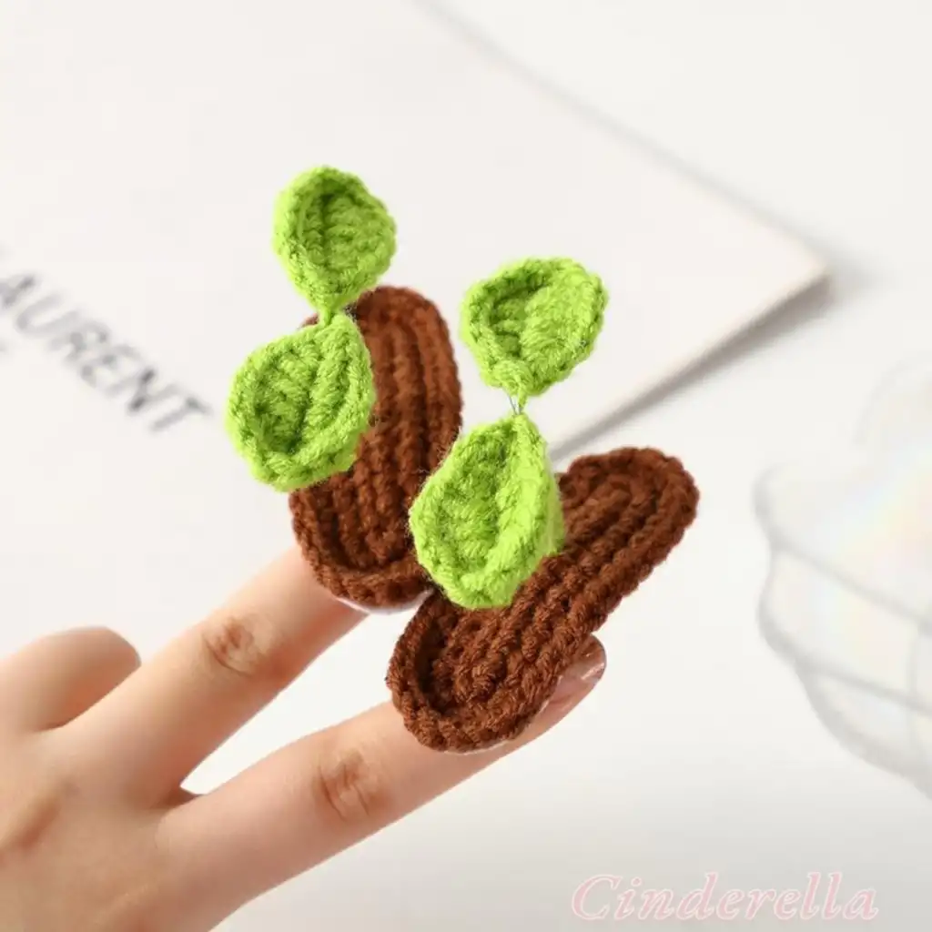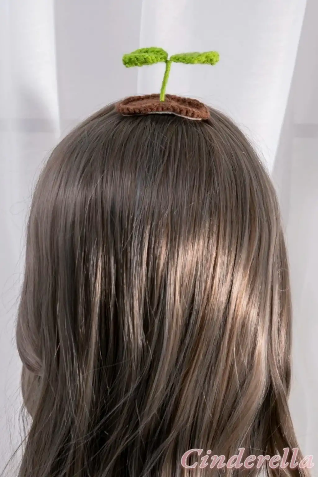 Çim Filizi Tasarım Sevimli Saç Tokası - El Yapımı Örgü İplik Anime Pens Saç Toka