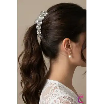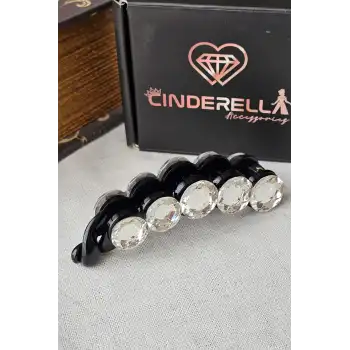 Zarif Papatya Çiçekli Zirkon Taşlı Yapraklı Gold Kadın Mandal Toka 10 cm - Metal Mandallı Saç Tokası
