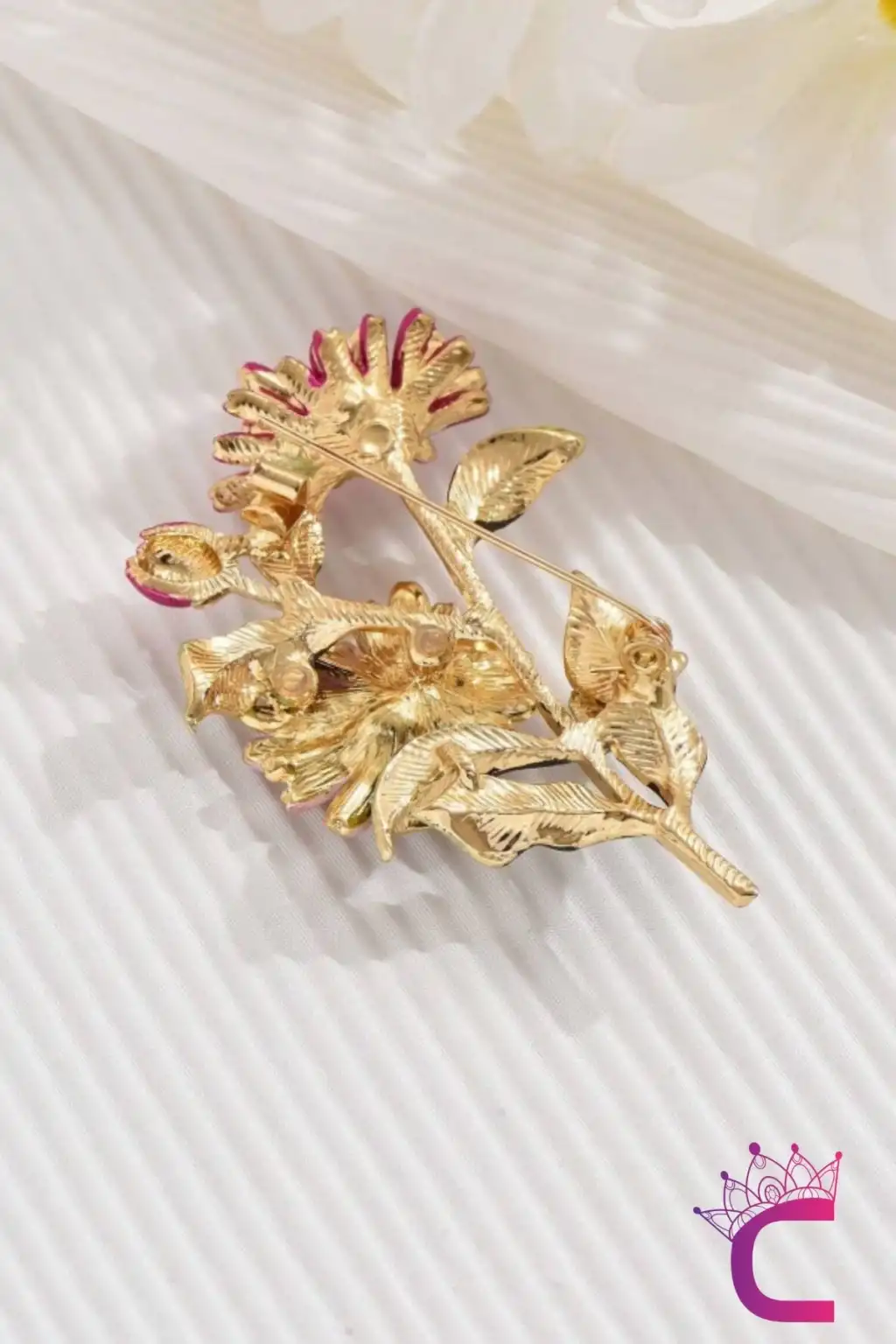- Kore tarzının zarif dokunuşunu yansıtan dekoratif çiçek desenleriyle süslenmiş, şıklığı ve feminenliği ön plana çıkaran kadın broş.