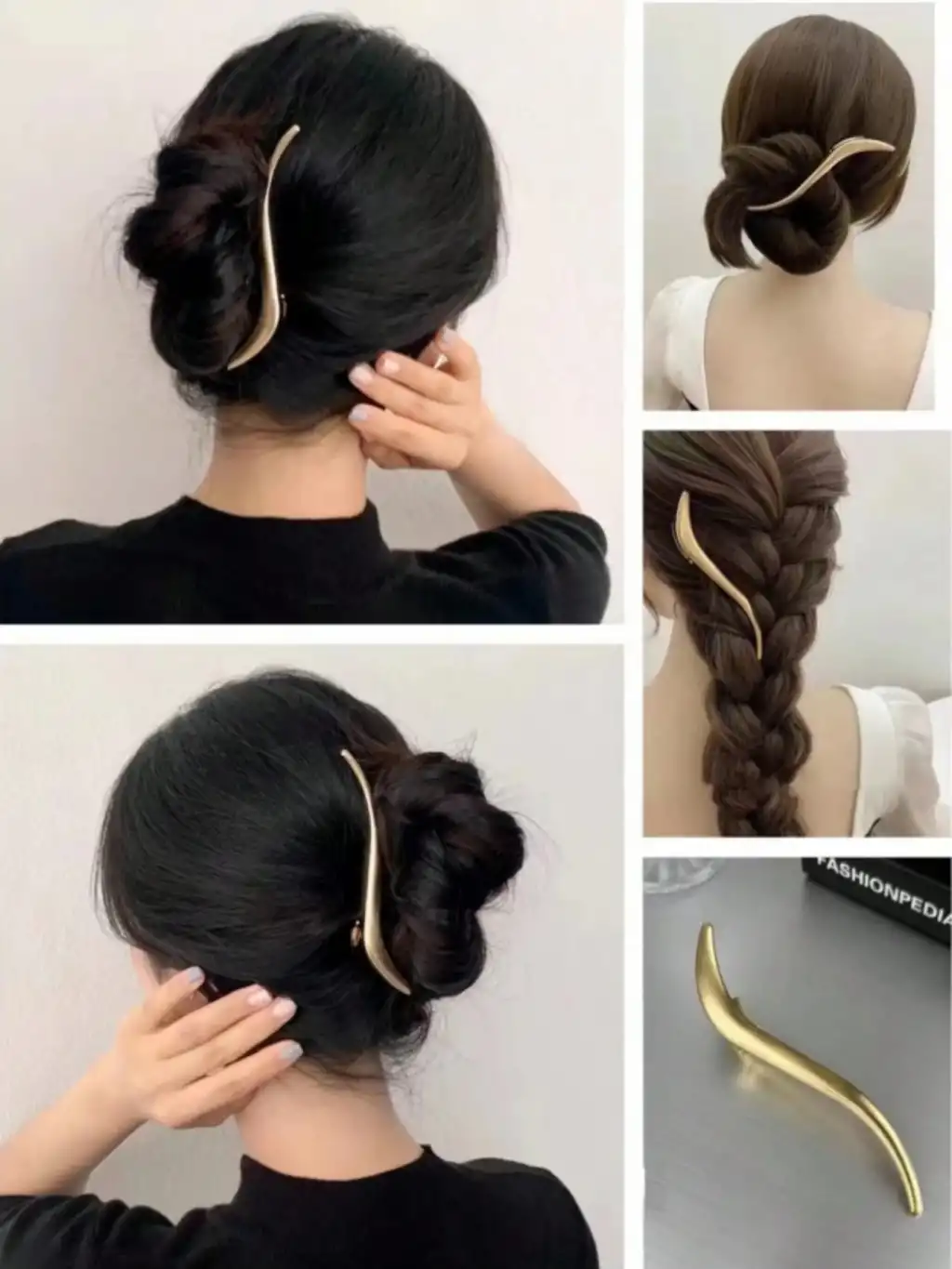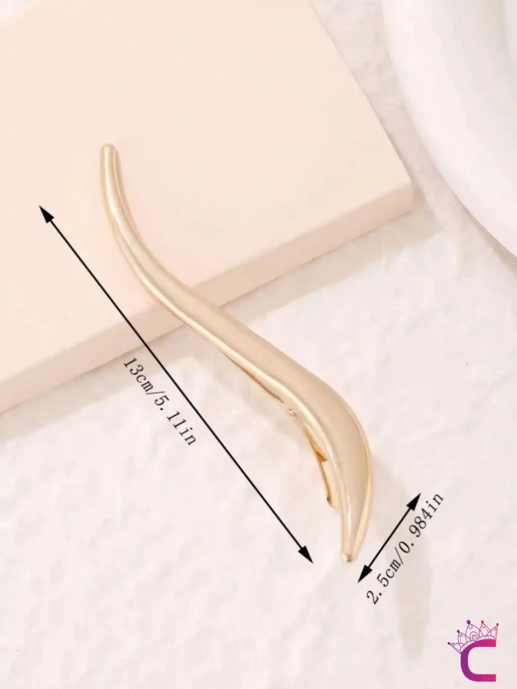 Dekoratif S Tasarım Büyük Boy Pens Saç Tokası Gold Metal 13cm - Kadın Klipsli Yan Toka Topuz Tokası