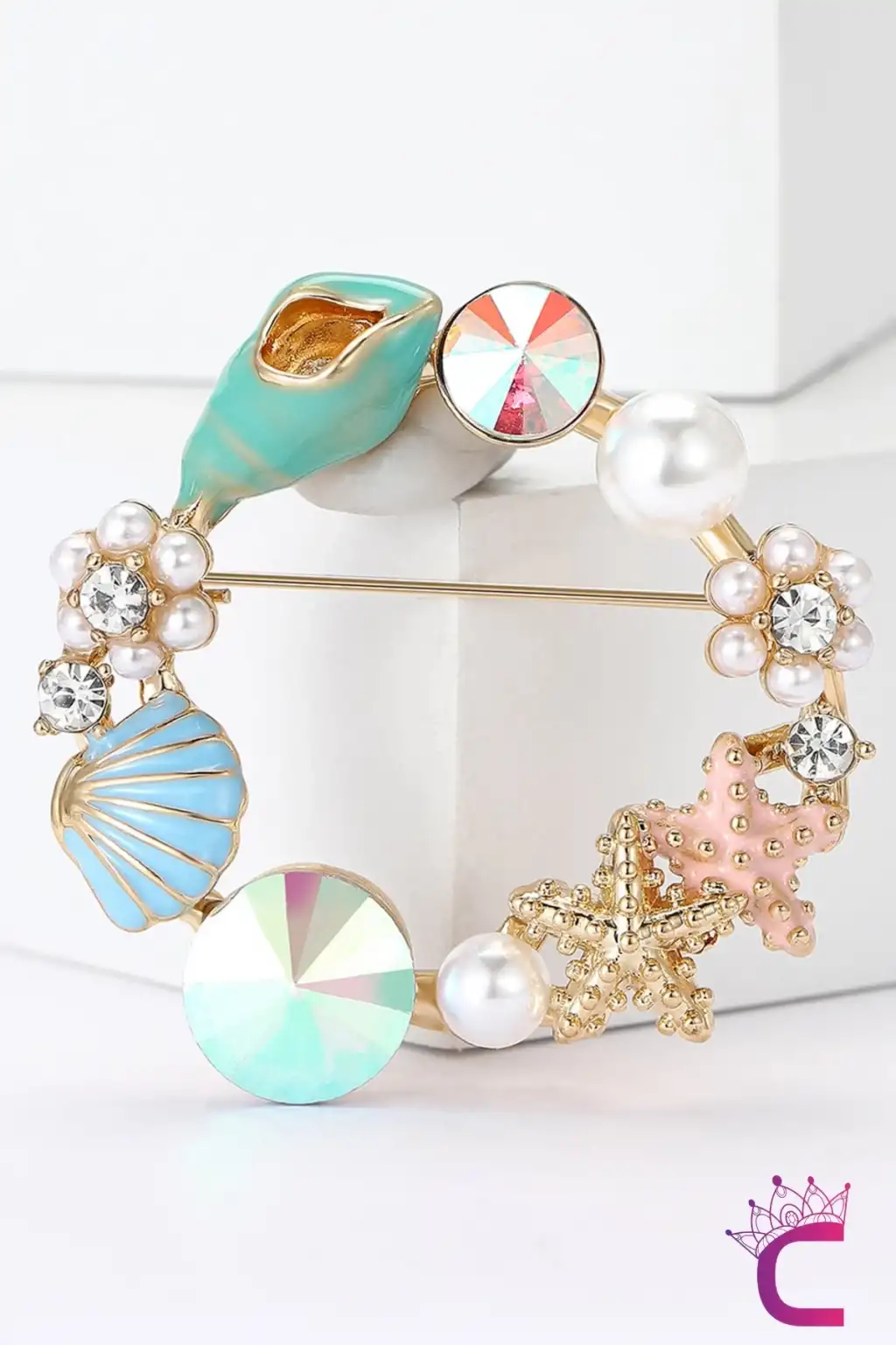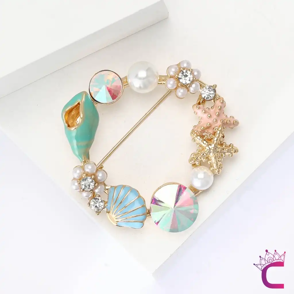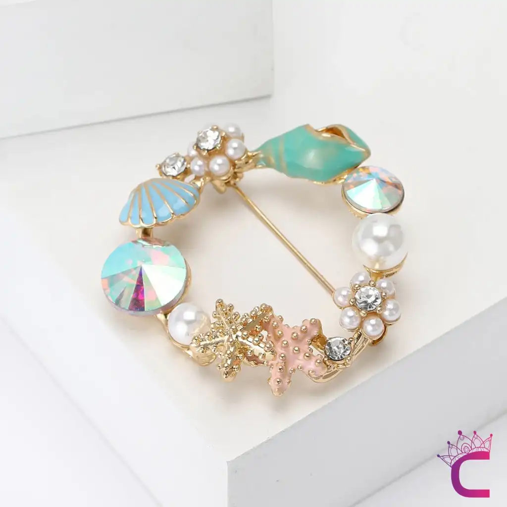 - Zarif tasarımıyla dikkat çeken Deniz Yıldızı İncili Taşlı Çiçekli Kadın Çelenk Broş, özel günlerinizde şıklığınızı tamamlar.