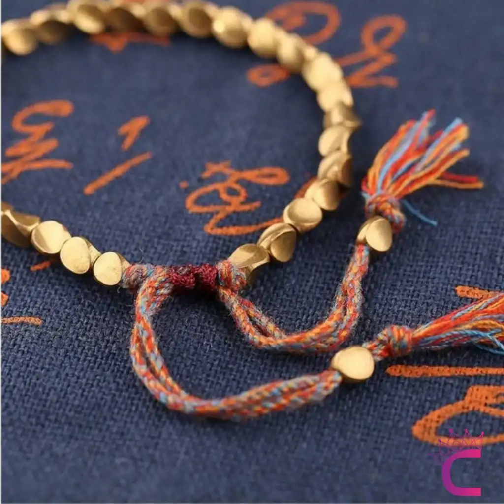 El Yapımı Örgülü Vintage Erkek Bakır Boncuk Bileklik - Ayarlanabilir İpli Halatlı Şans Bilekliği