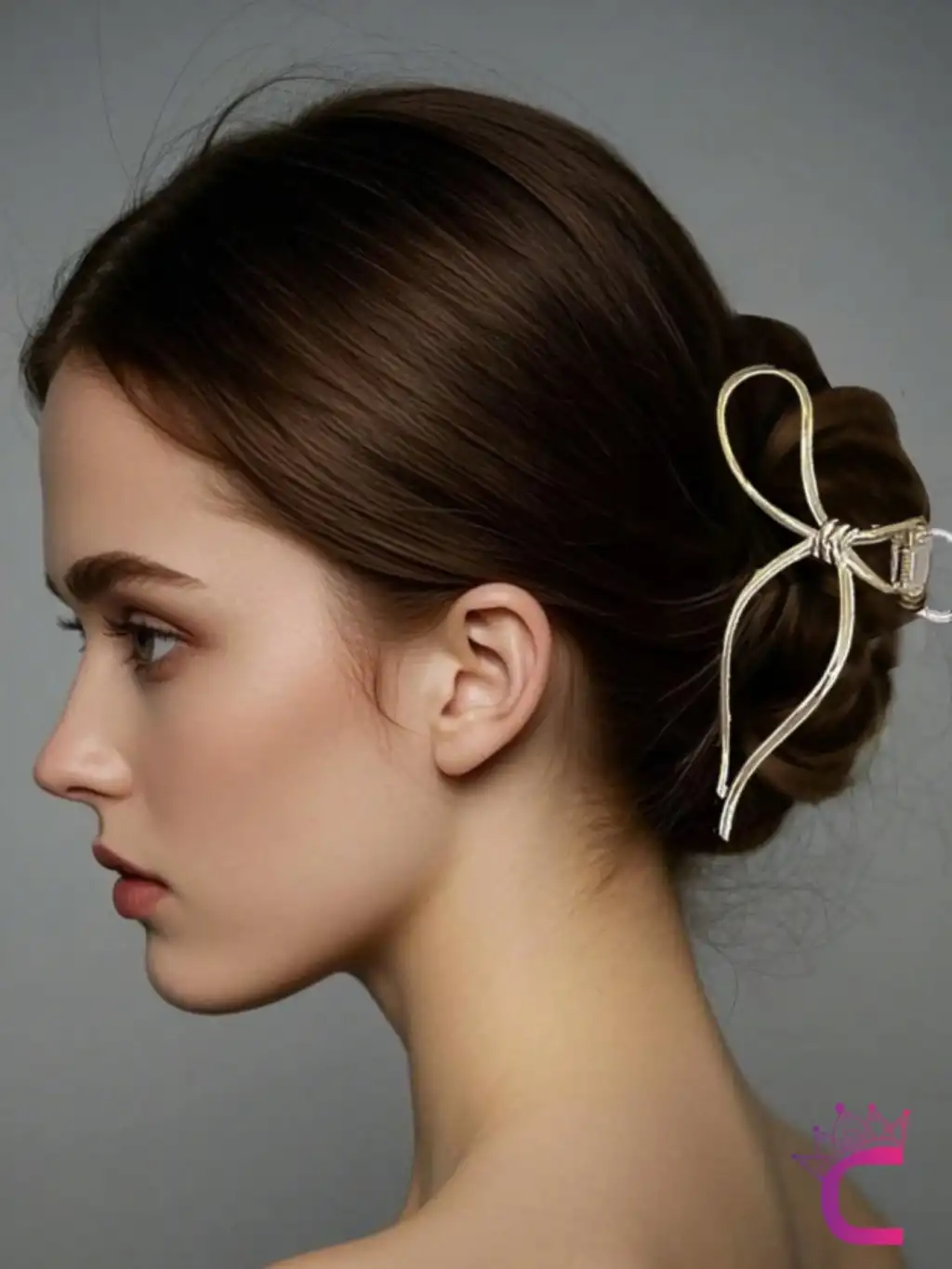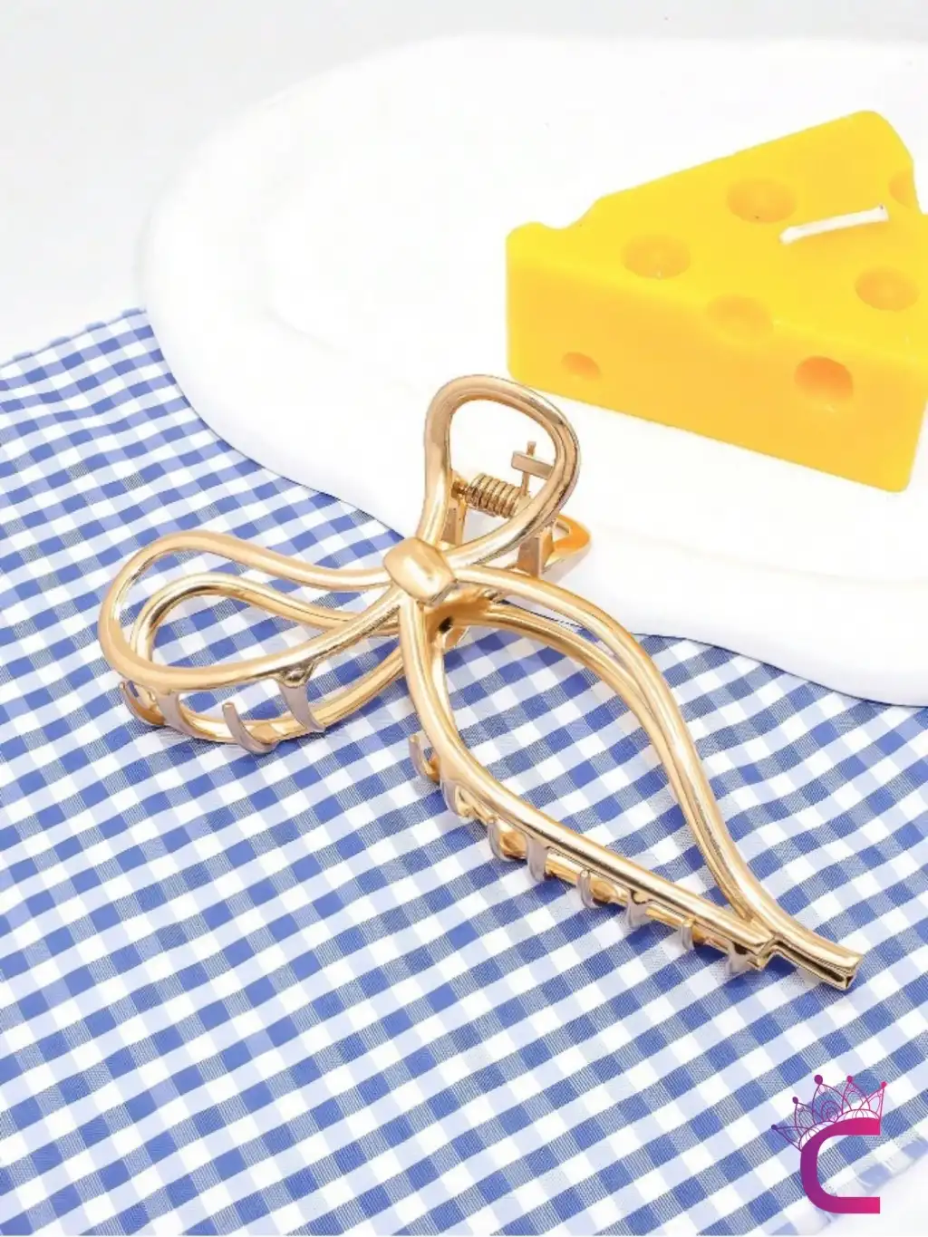 Fiyonk Model Gold Kadın Metal Mandal Toka 11.5cm - Kurdele Fiyonklu Mandallı Saç Topuz Tokası
