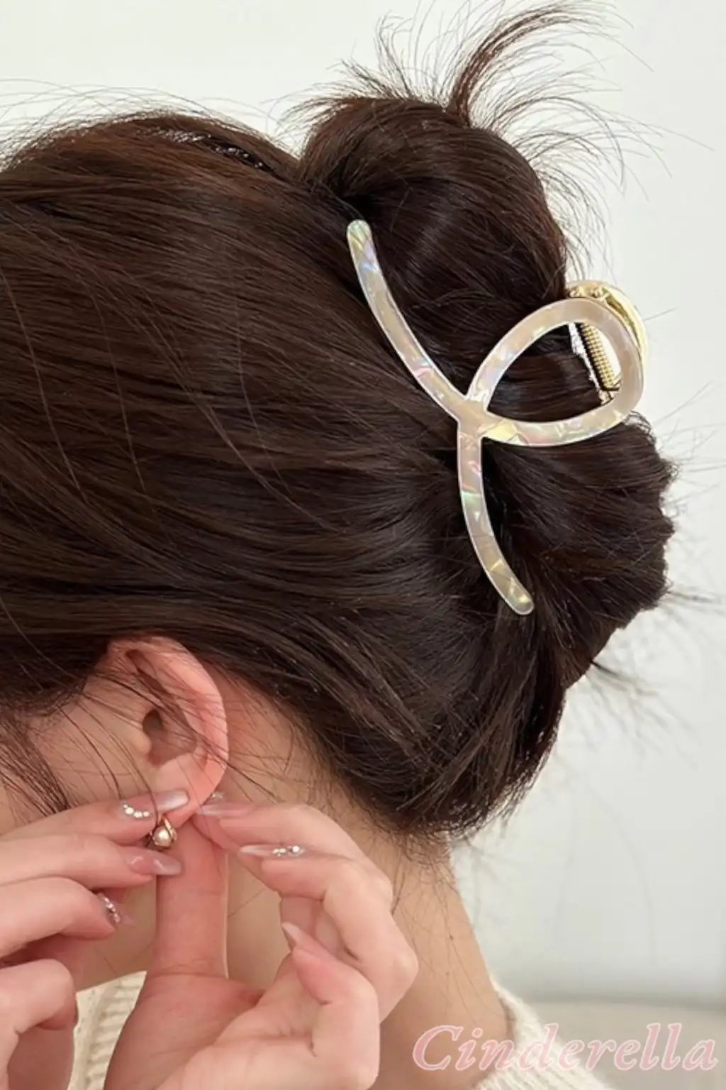 Fiyonk Model Hologram Desenli Kemik Mandal Toka Krem 11.5 cm - Yeni Trend Mandallı Saç Topuz Tokası