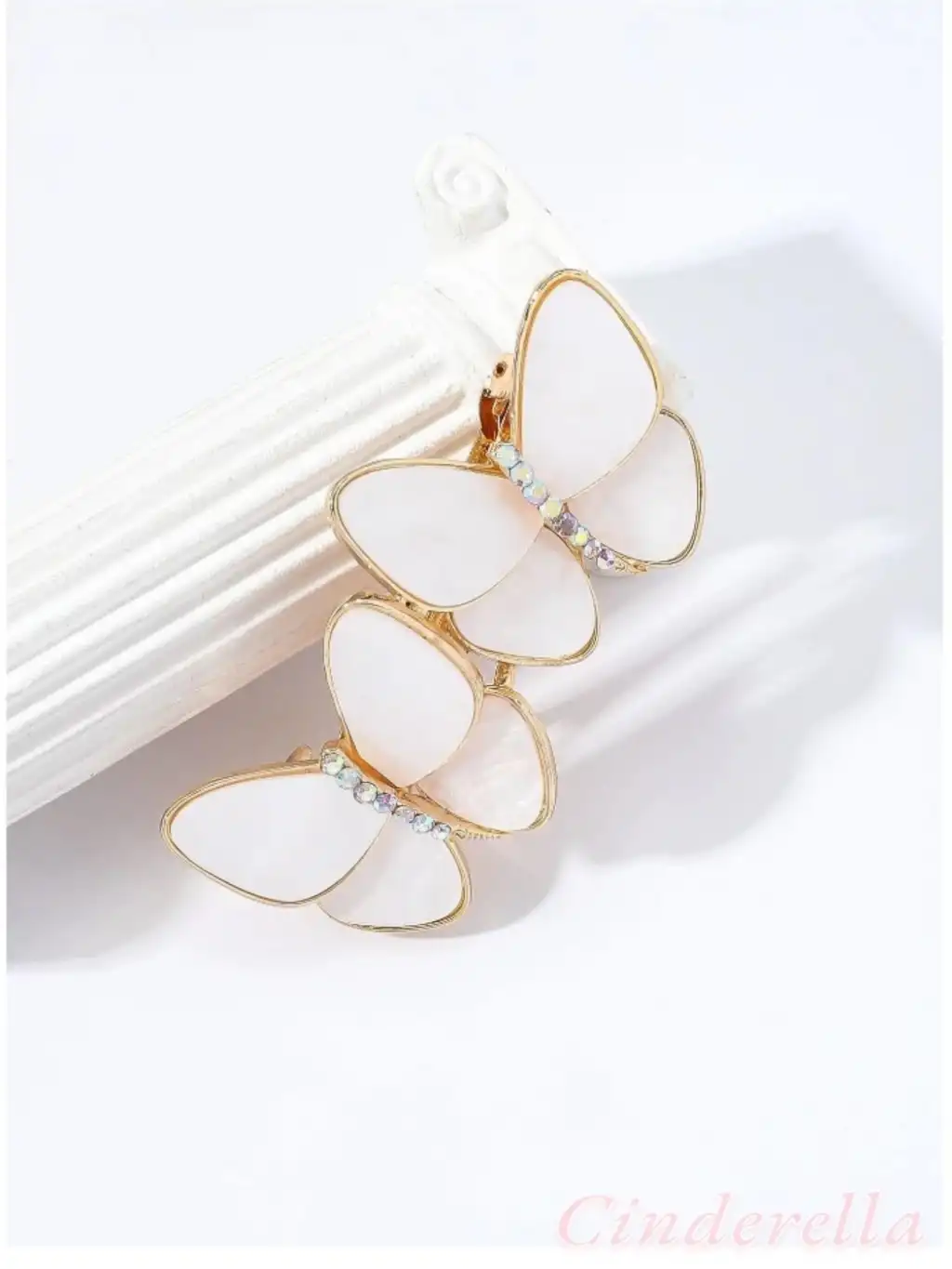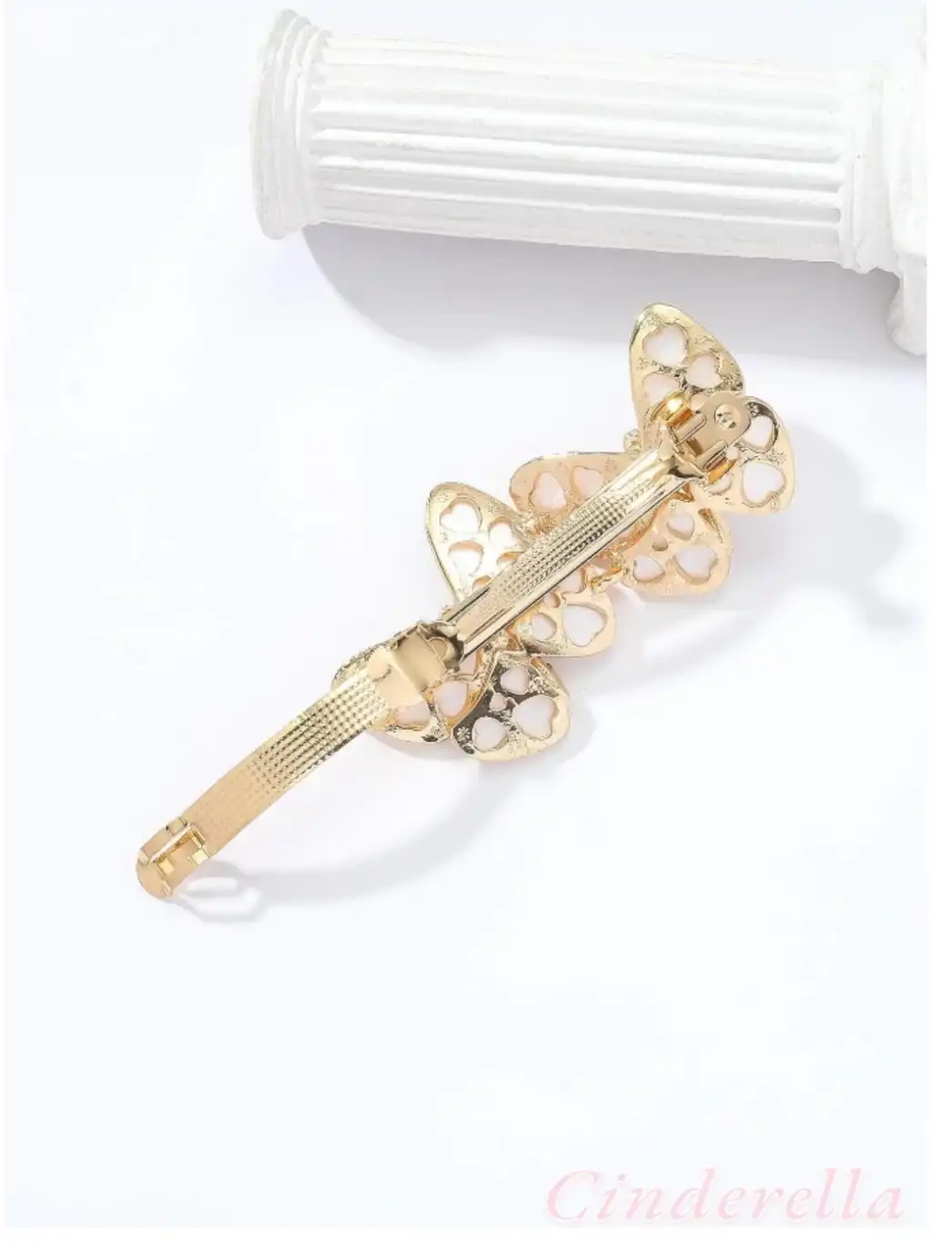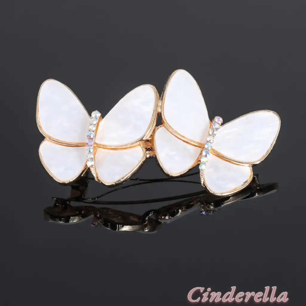 Fransız Sedef Kelebek Tasarım Kristal Taşlı Otomatik Klipsli Toka - Kadın Trend Saç Topuz Tokası