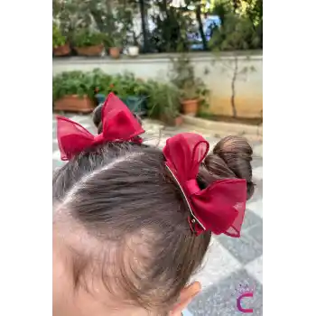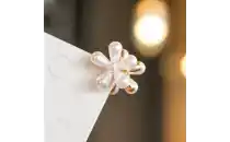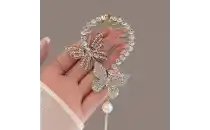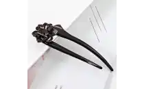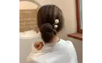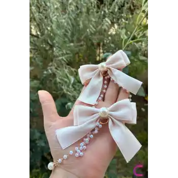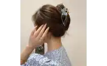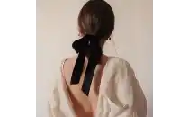 Fransız Tarzı Uzun Kurdele İnci Dekor Siyah Kadife Fiyonk Otomatik Toka - Zarif Kadın Saç Tokası