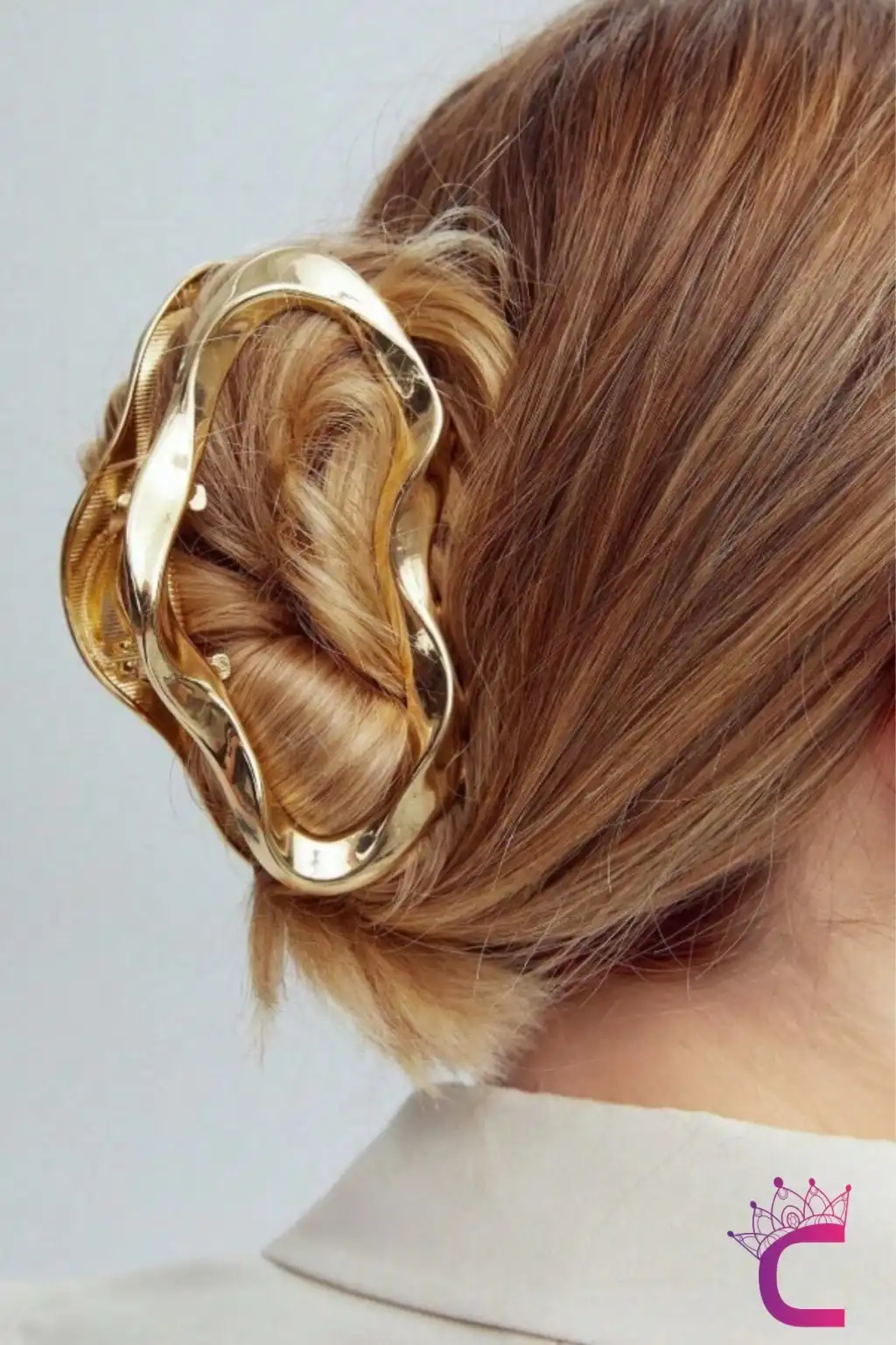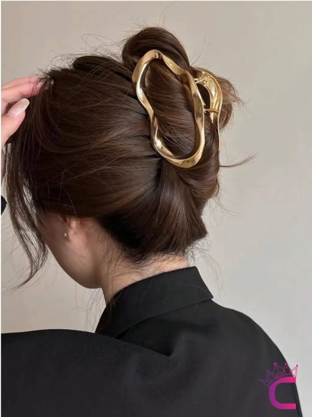 Geometrik Tasarım Gold Kadın Metal Mandal Toka 11 cm - Yeni Trend Zarif Mandallı Saç Topuz Tokası