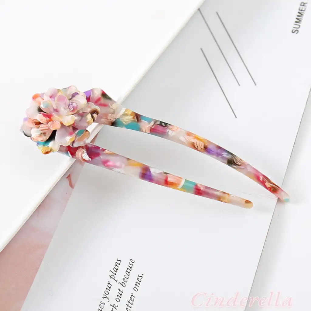 Gökkuşağı Parti Flower Fransız El Yapımı Lüks Kemik Topuz Tokası - Vintage Çubuk Saç Topuz Tokası