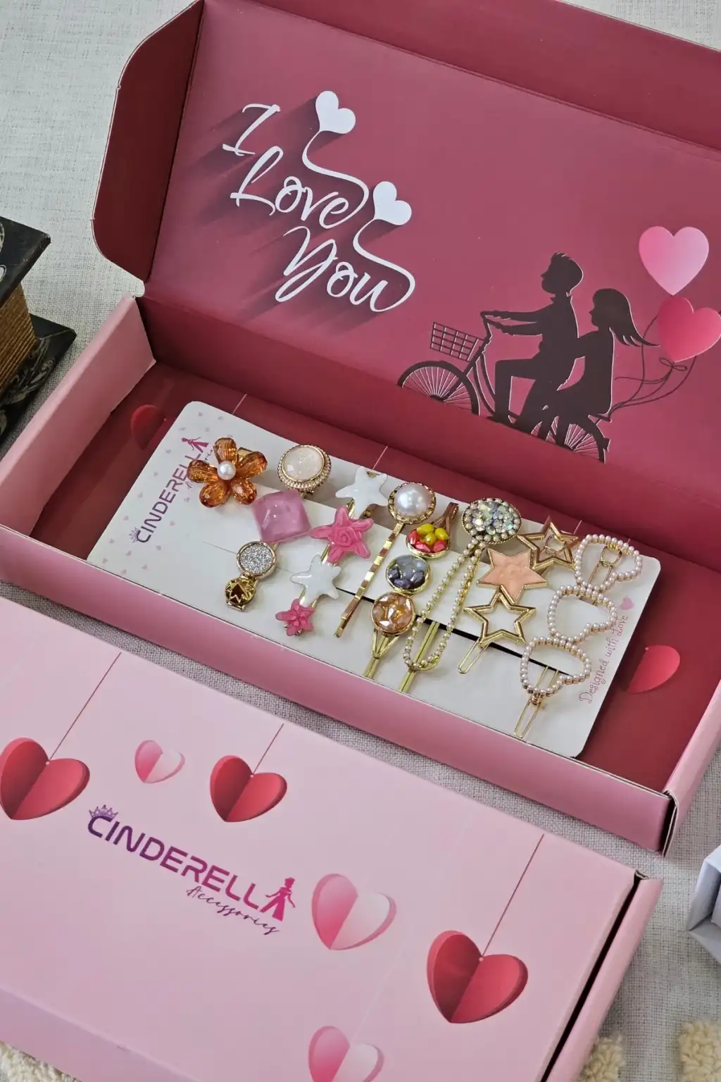 I LOVE YOU Özel Hediye Kutusu Pembe 3x10x22cm- Kadına Sevgiliye Kız Arkadaşa Hediyelik Toka Kutusu