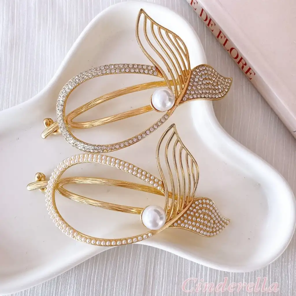 İnci Taşlı Balık Kuyruğu Metal Klipsli Topuz Tokası Gold - Yeni Sezon Kadın Kıstırmalı Saç Tokası
