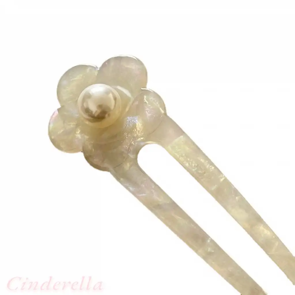 İncili Beyaz Model France-Handmade Lüks Kemik Topuz Tokası - Çubuk Saç Topuz Tokası