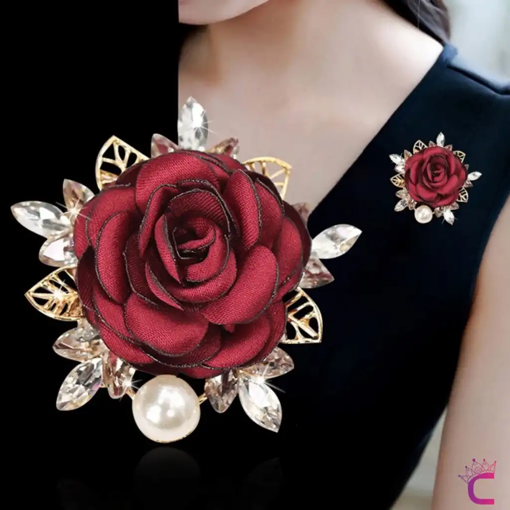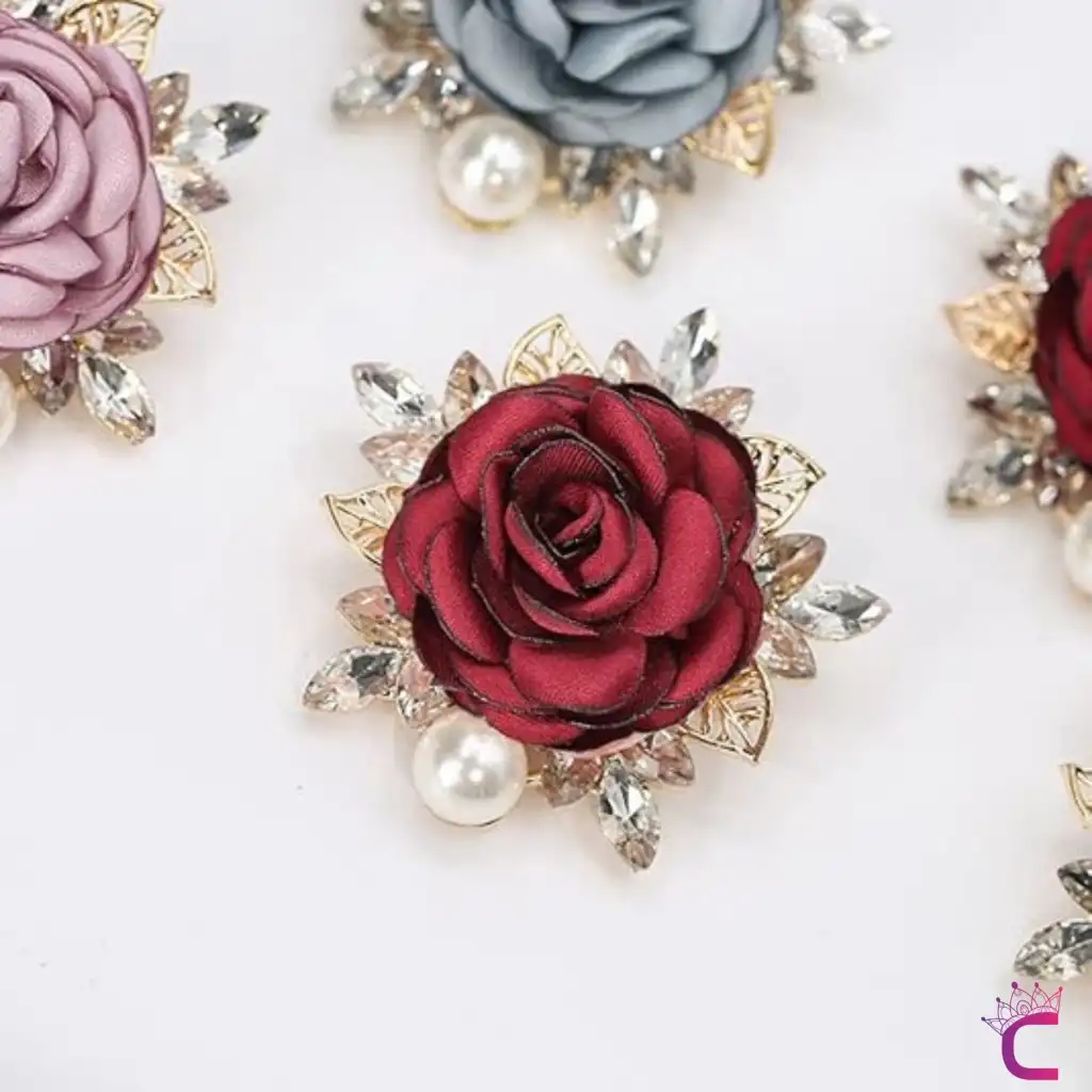 - Zarif tasarımıyla dikkat çeken incili kristal taşlı kırmızı kumaş çiçek gül broş, şıklığınızı tamamlar.