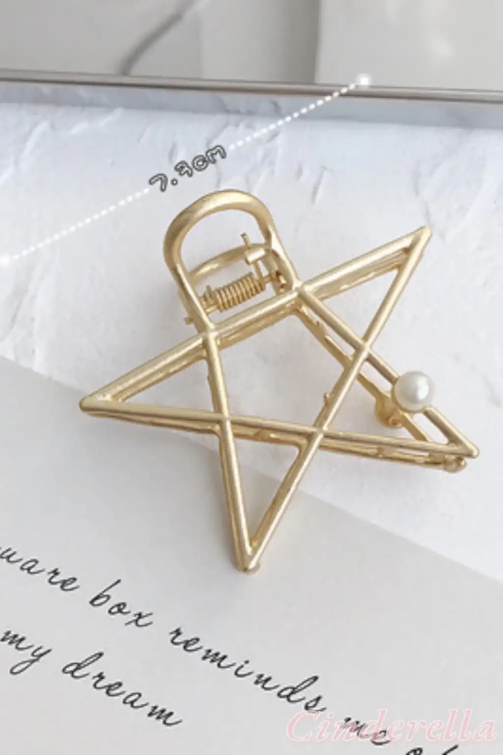 İncili Yıldız Model Kadın Gold Metal Mandal Toka - Orta Boy Sıkı Toplayan Lüks Mandal Saç Tokası
