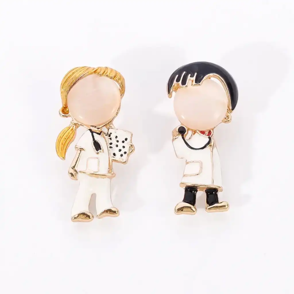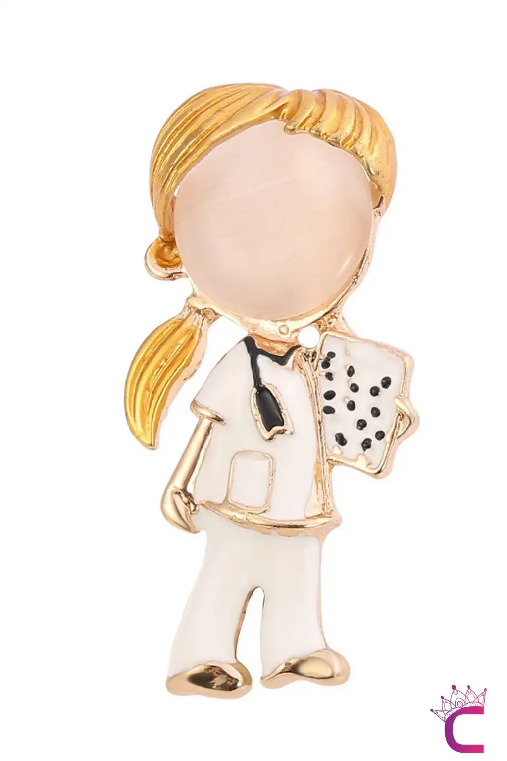 Kadın Doktor Broş - Hediyelik Takı Aksesuar Charm Çanta Süsü Ceket Yaka İğnesi Rozeti Meslek Broşu