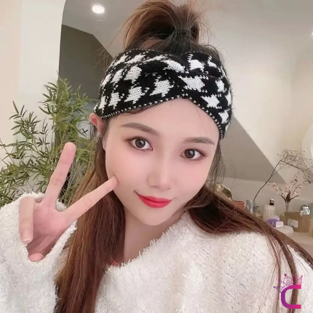 Kadın Kışlık Örgü Kafa Bandı Saç Bandana Siyah Beyaz - Geniş Rahat Günlük Kullanım Makyaj Bandanası