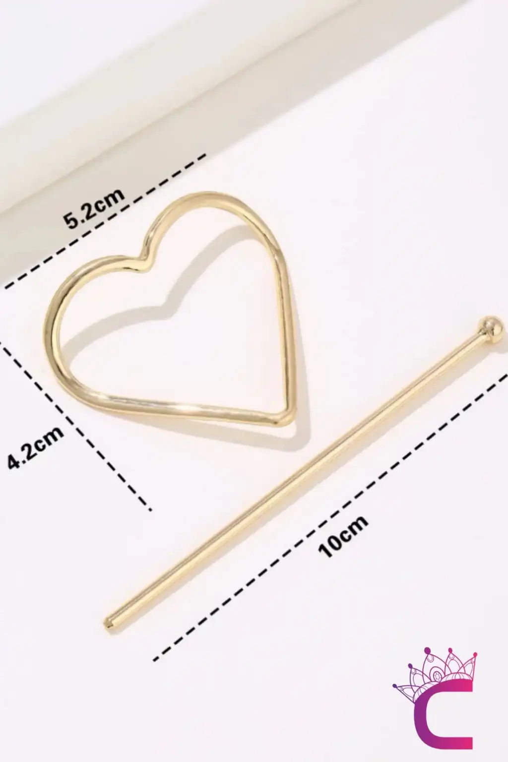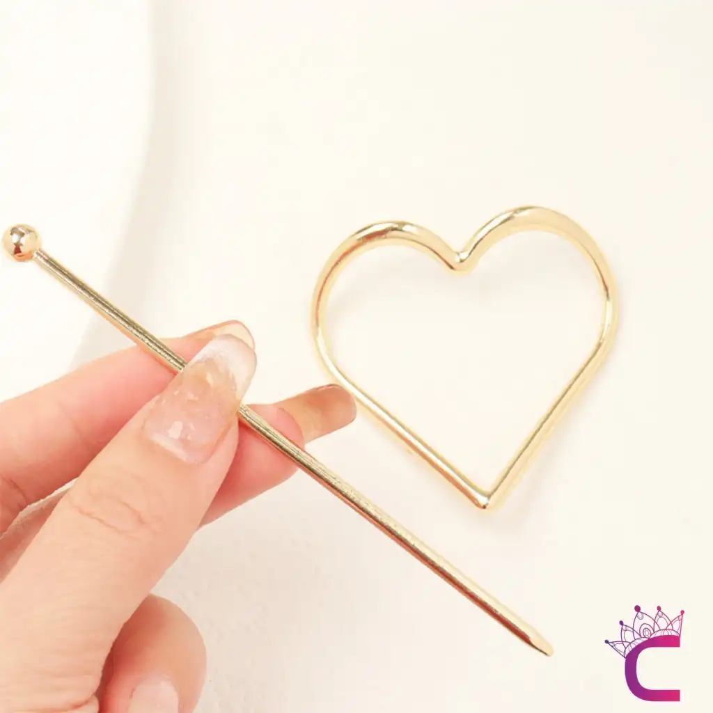 Kalp Tasarım Gold Metal Topuz Tokası - Kadın Aksesuar Kalpli Topuz Çubuk Toka Saç Çubuğu