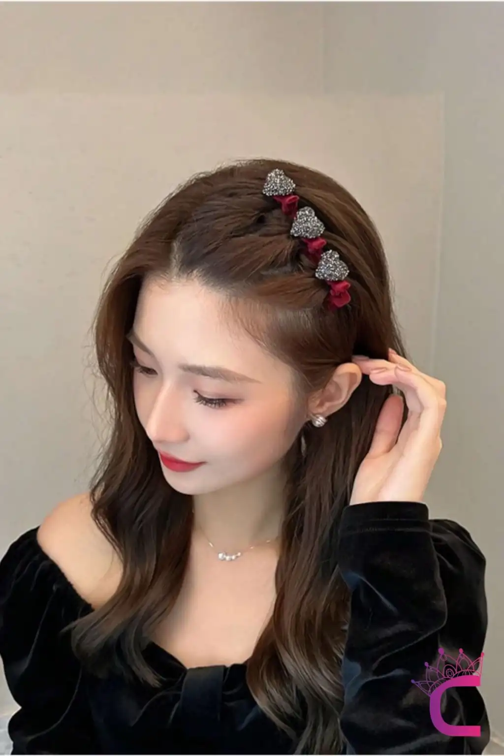 Kalpli Saç Bükücü Kadife Dokulu Yan Saç Tokası Bordo - Mini Taşlı Klips Pens Toka Saç Aksesuarı