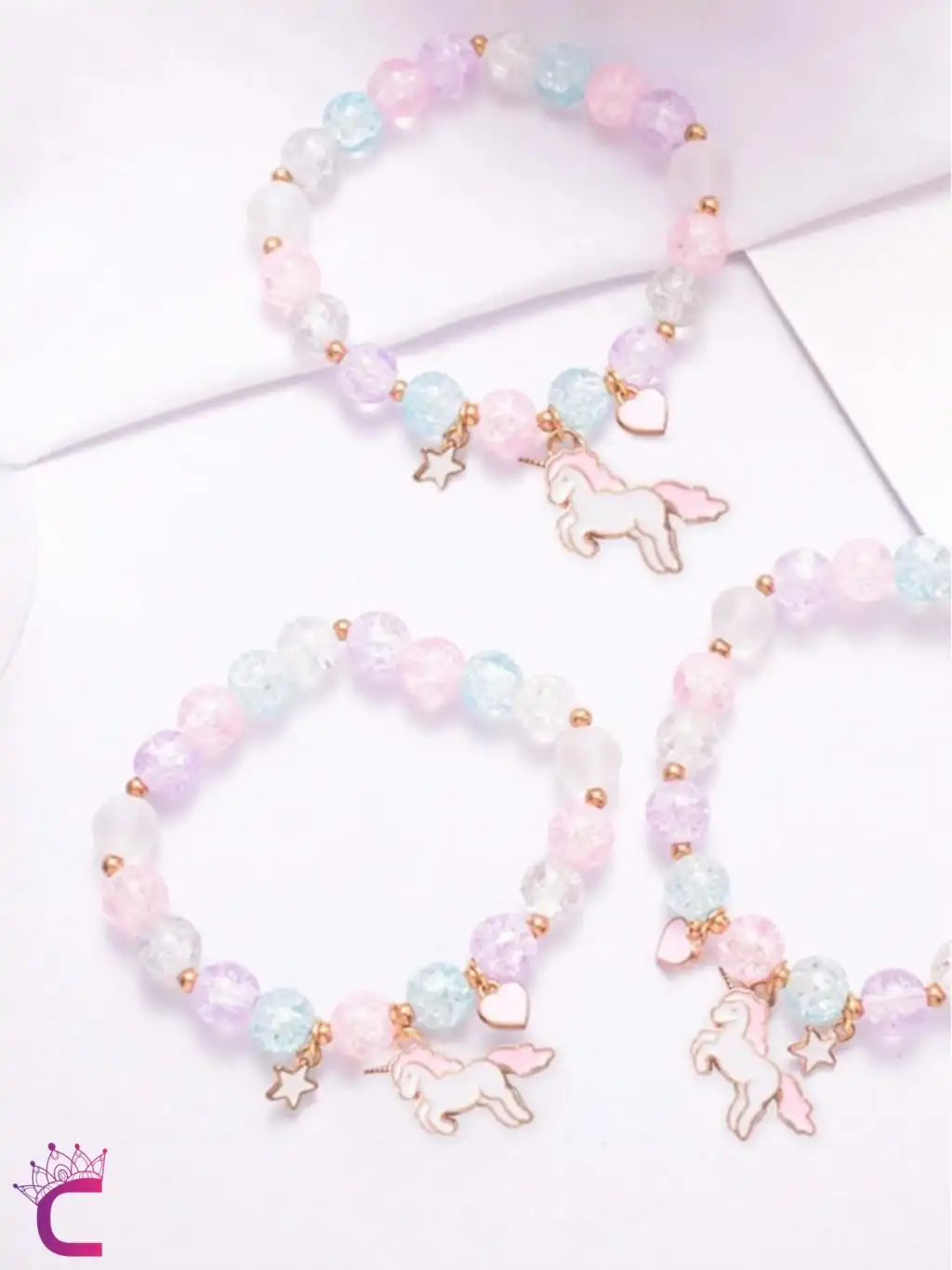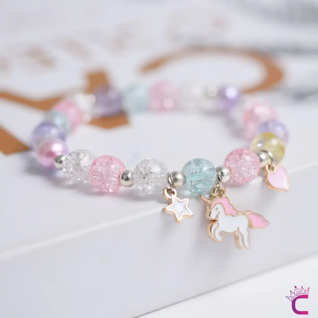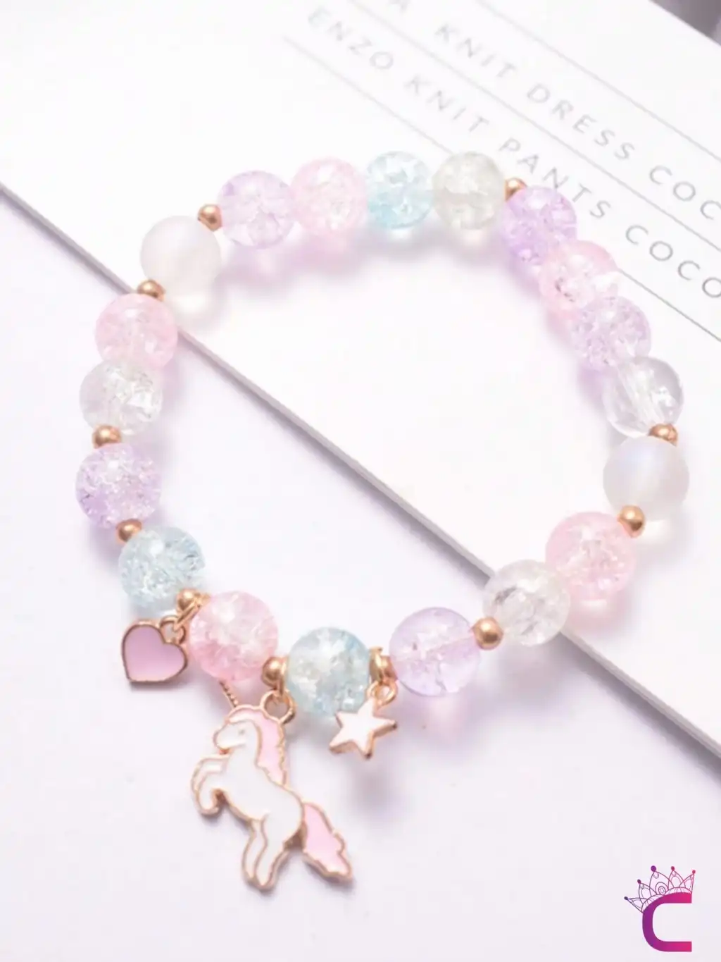 Kalpli Yıldızlı Unicorn Aytaşı Boncuklu Kız Çocuk Bileklik - Doğum Günü Hediyesi Hediyelik Aksesuar