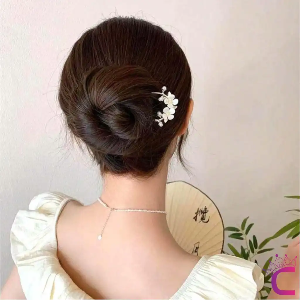 Kamelya Çiçeği Tasarım Metal Saç Topuz Tokası 11cm Gold - Vintage Style Kadın Çubuk Topuz Tokası