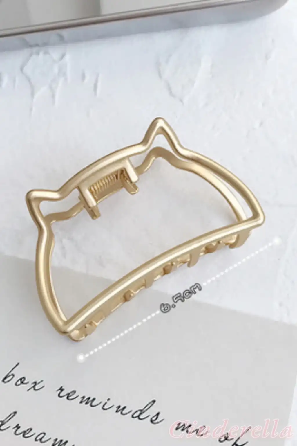 Kedi Model Kadın Gold Metal Mandal Toka - Orta Boy Sıkı Toplayan Lüks Mandal Saç Tokası