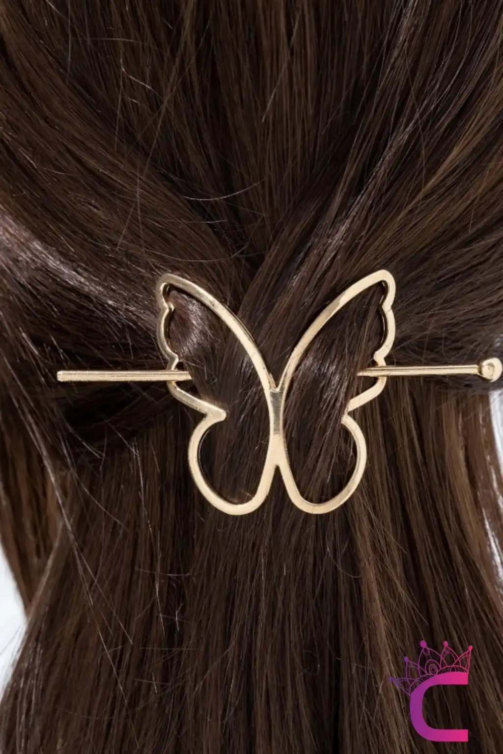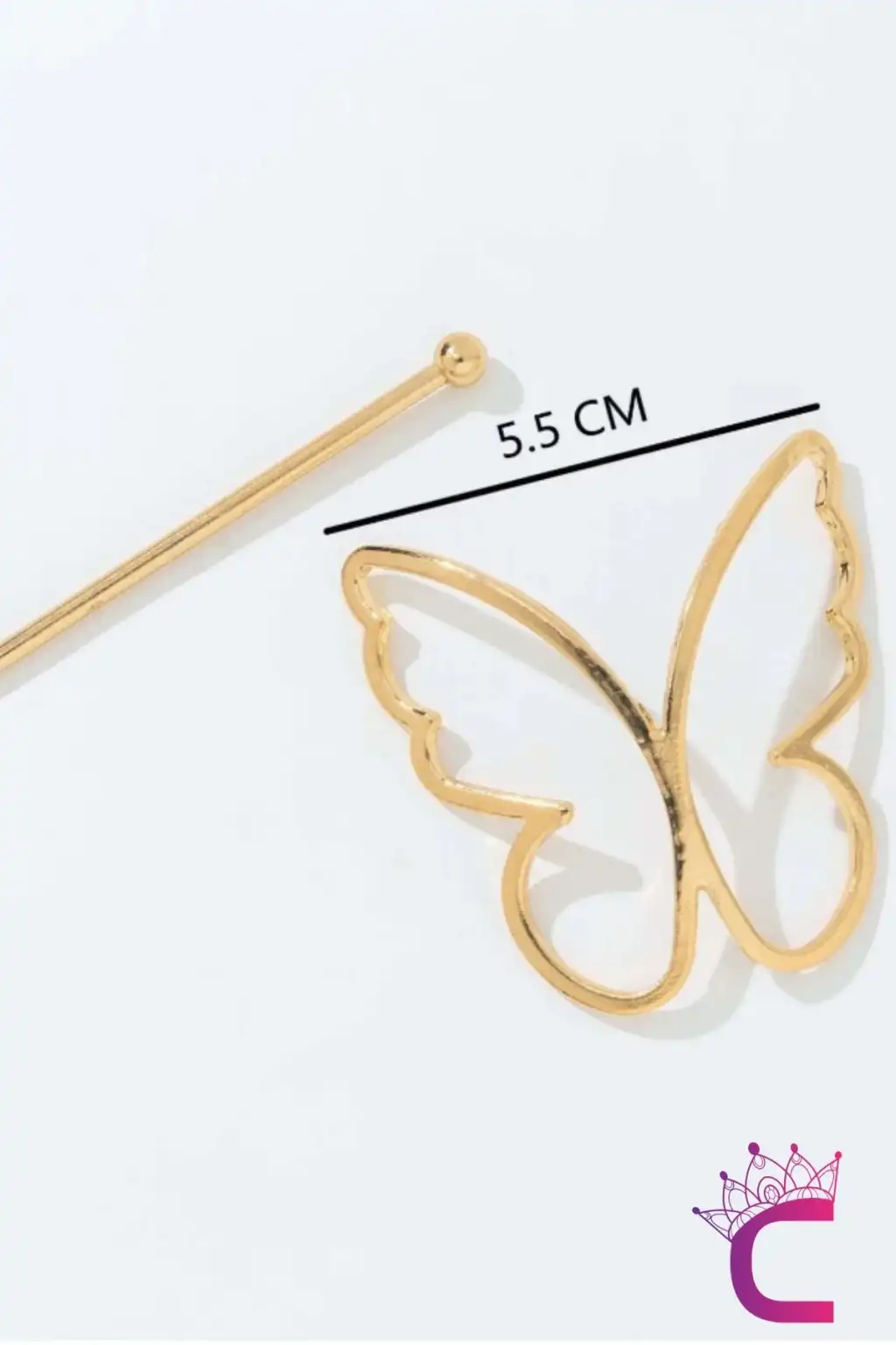 Kelebek Tasarım Gold Metal Topuz Tokası - Kelebekli Çubuk Toka Saç Çubuğu Aksesuar Kadın