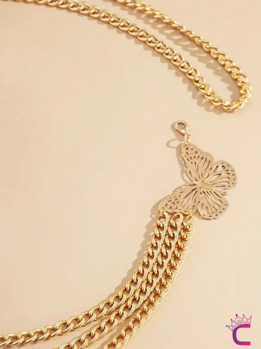 - Zarif tasarımıyla dikkat çeken kelebekli gold bel zinciri, vücut elbiselerinizi tamamlamanın şık bir yoludur.