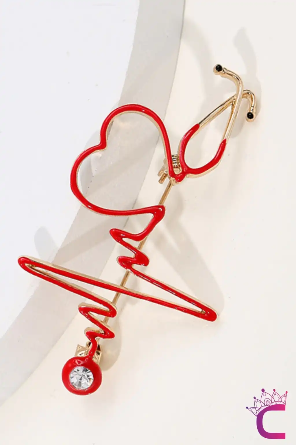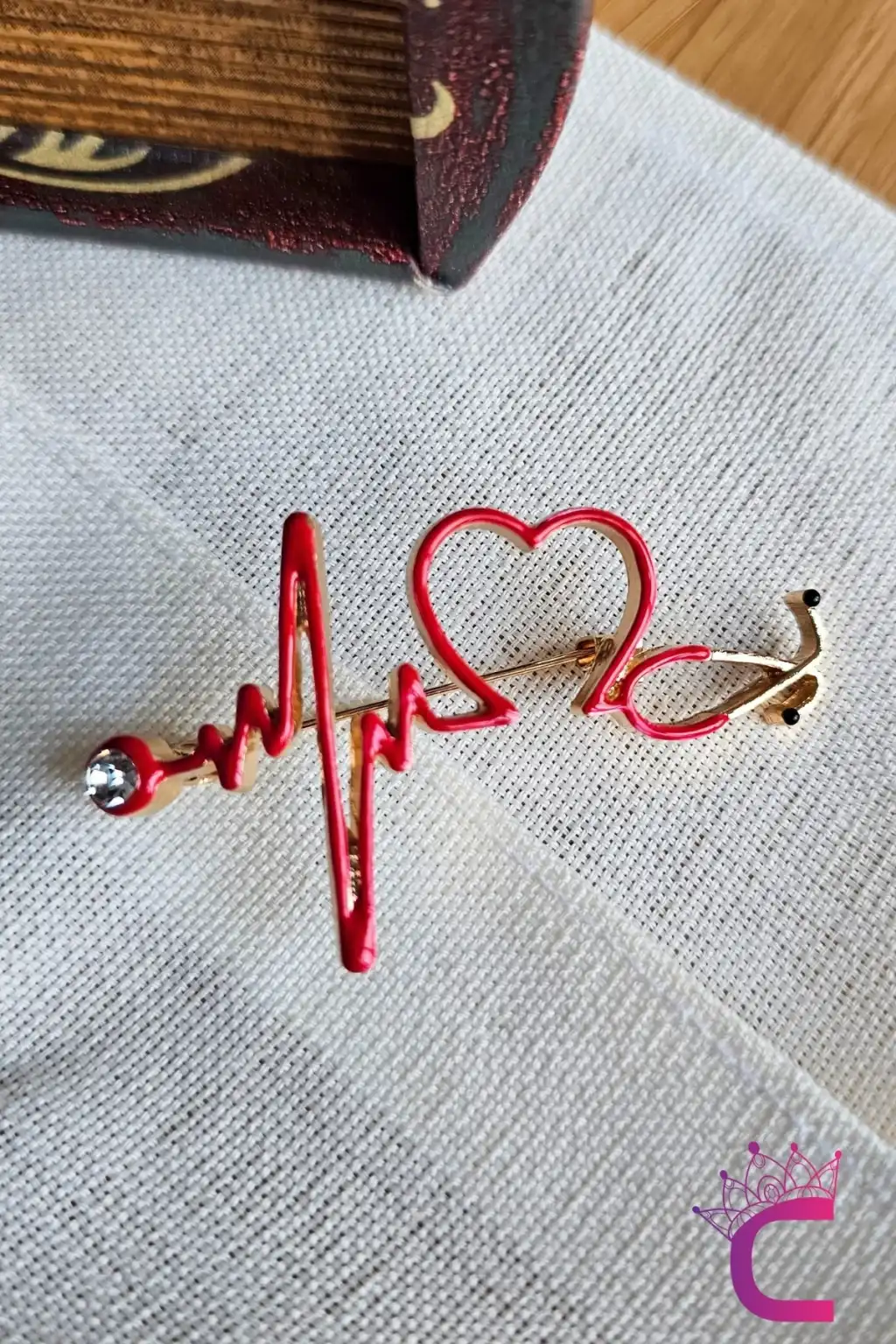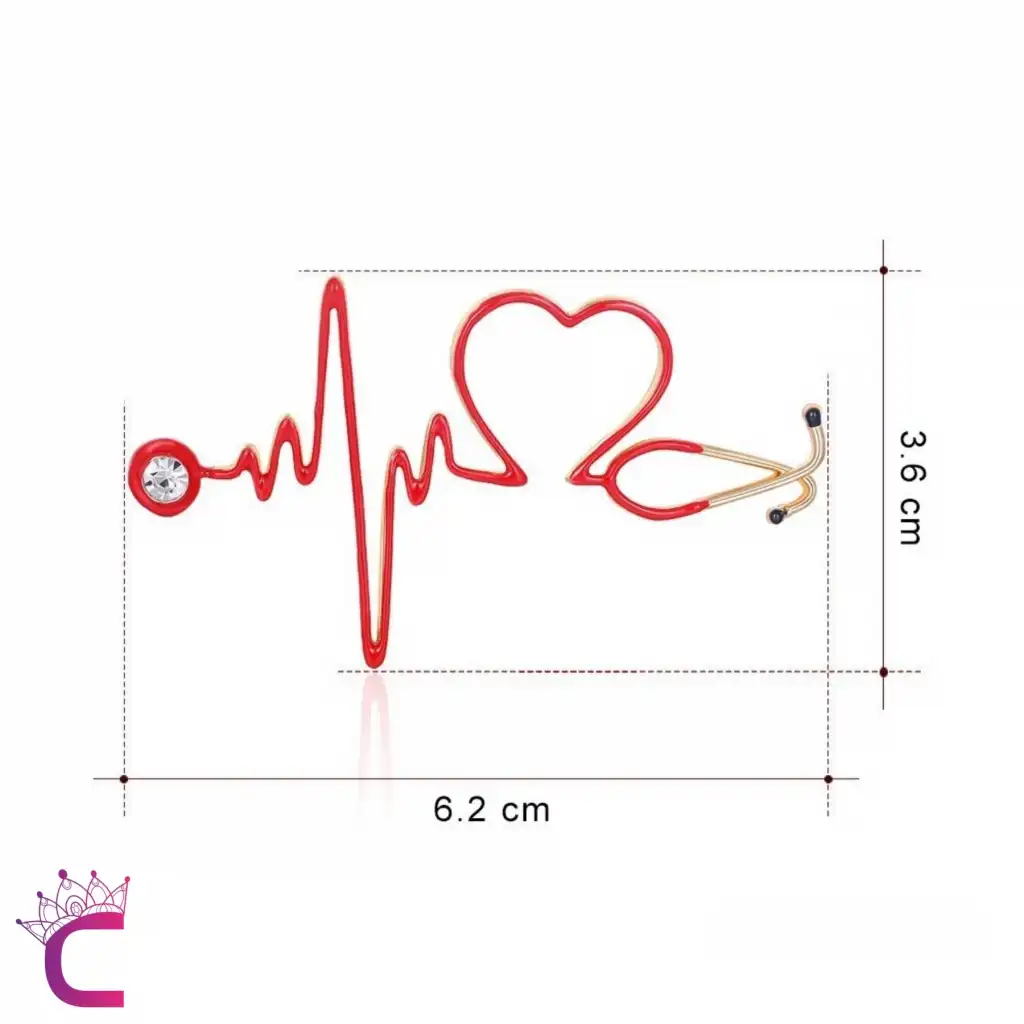- Doktorların ve hemşirelerin profesyonel görünümünü tamamlayan, kırmızı kalp atışı tasarımıyla dikkat çeken steteskop broş.