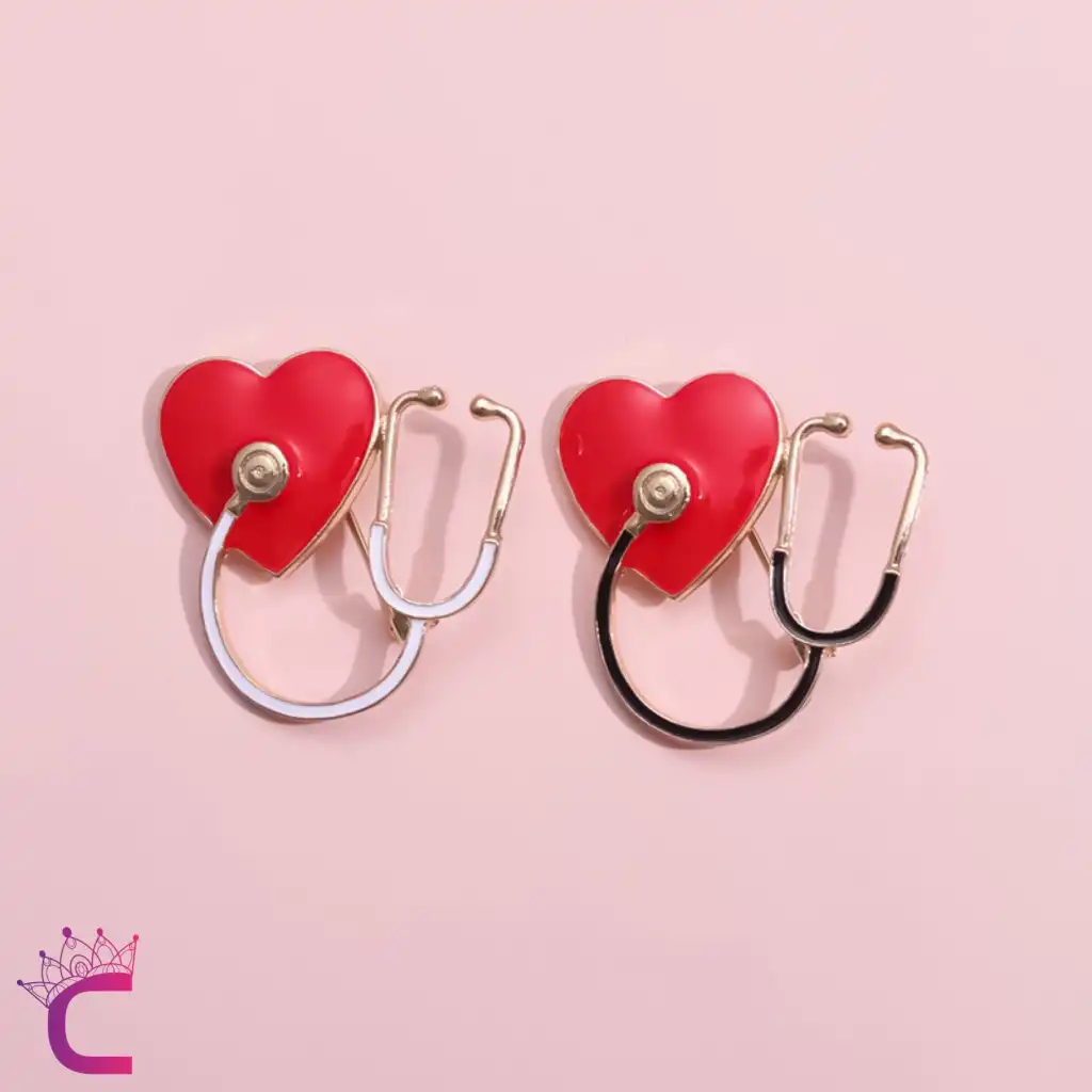 - Doktor, hemşire veya sağlık çalışanlarına özel tasarlanmış kırmızı kalpli steteskop broş, şıklığınızı tamamlar.