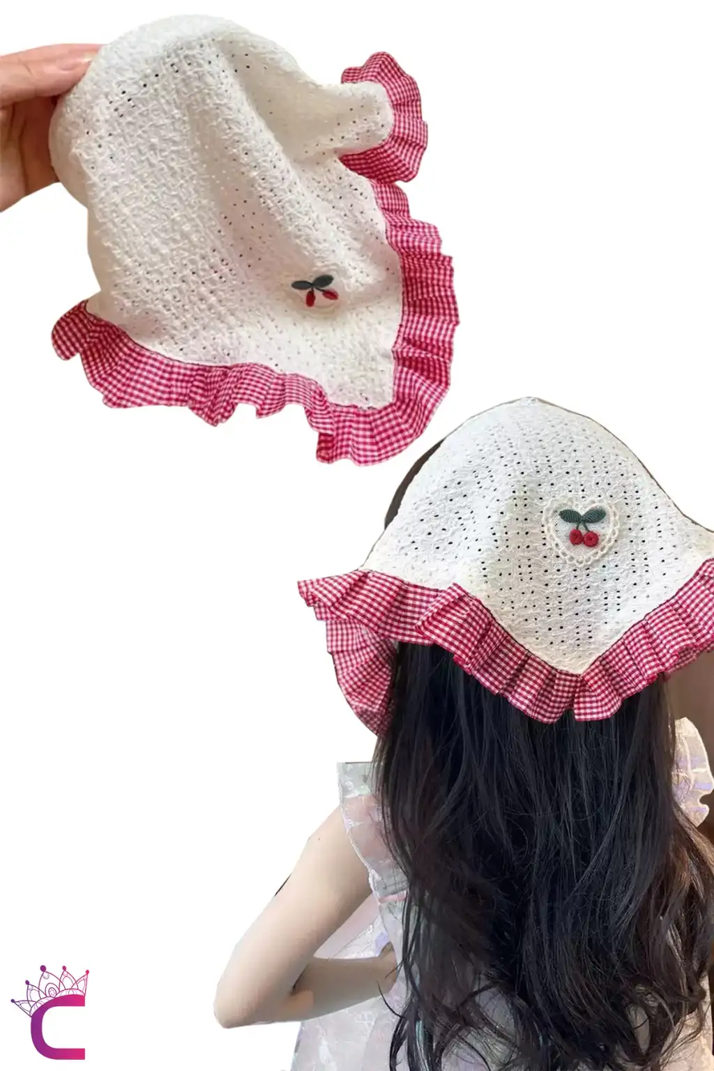 Kız Çocuk Genç Kadın Bohem Kirazlı Pötikareli Taç Saç Bandı Toka - Desenli Saç Bandanası Eşarp Taç