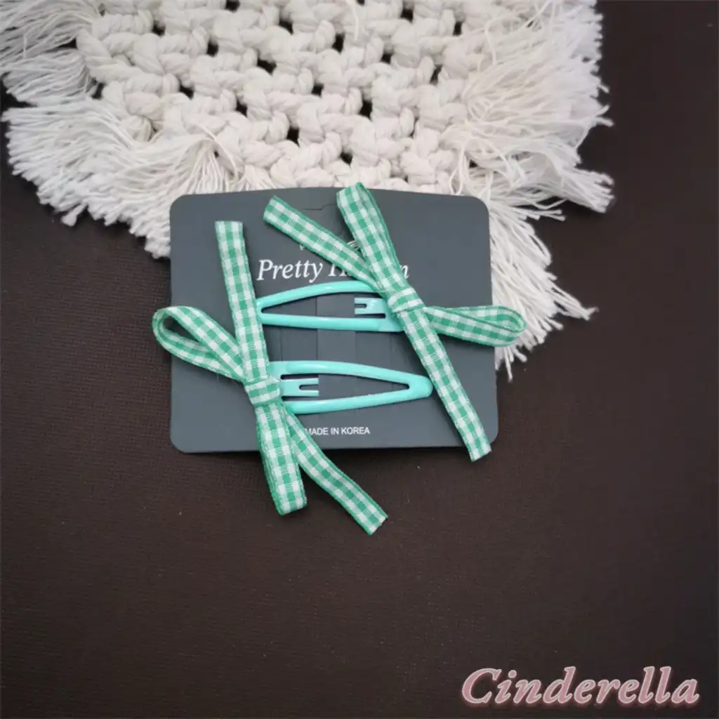 Kore Tarzı Kurdele Fiyonk Model Çıtçıt Toka Seti Yeşil - Zarif Kız Çocuk Çıtçıtlı Saç Tokası