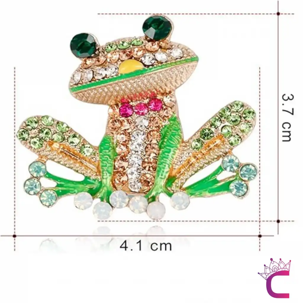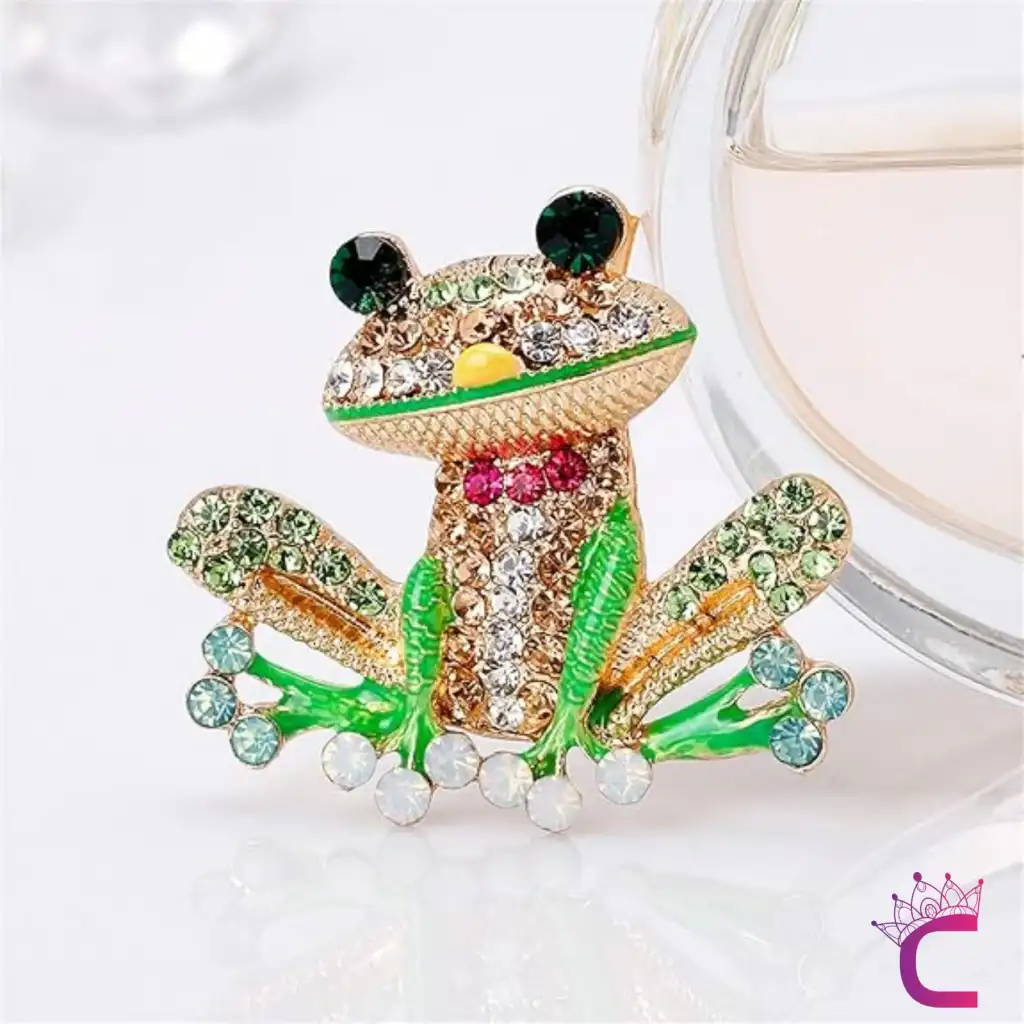 Kurbağa Tasarım Taşlı Kadın Broş - Sevimli Hediyelik Aksesuar Çanta Ceket Elbise Yaka İğnesi Broş