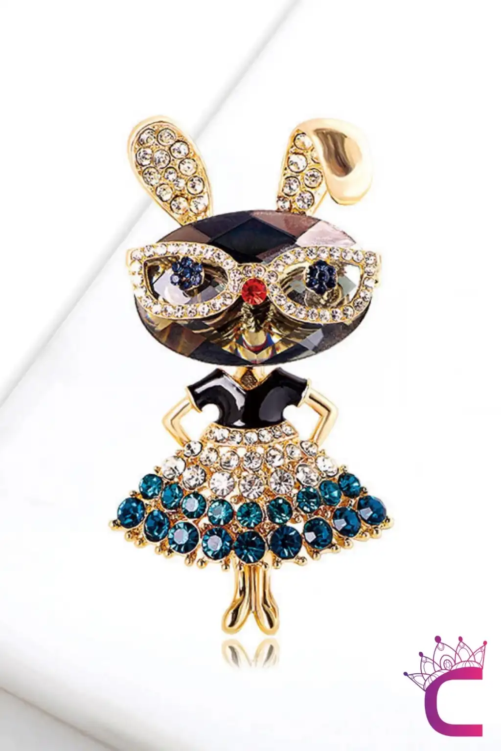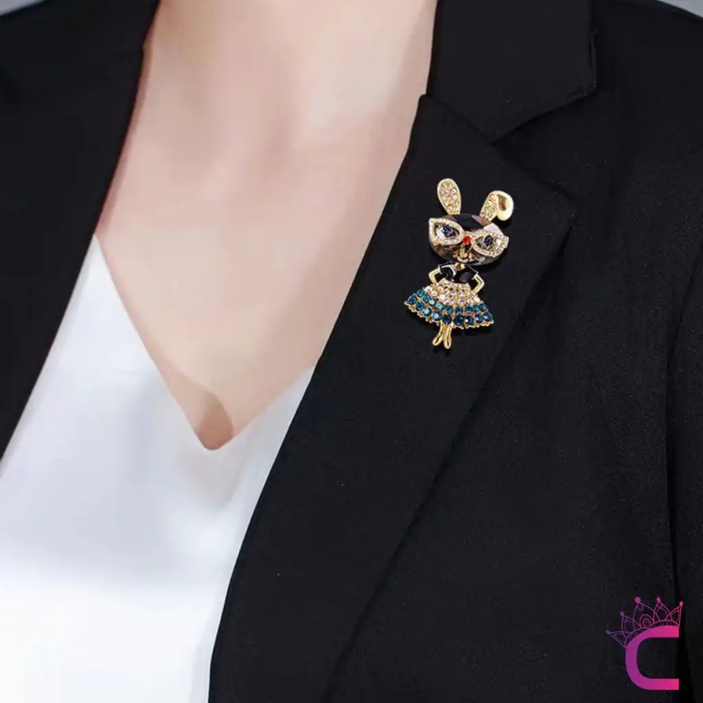 Lady Rabbit Özel Tasarım Taşlı Kadın Broş - Hediyelik Öğretmen Öğrenci Ofis İş Arkadaşı Yaka İğnesi