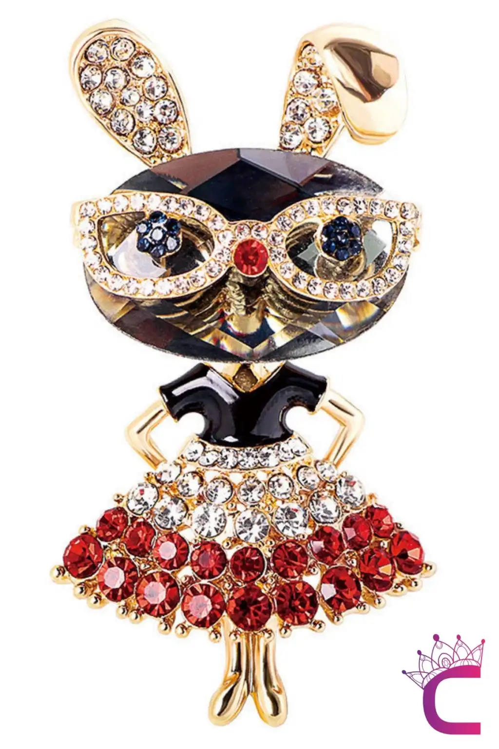 Lady Rabbit Özel Tasarım Taşlı Kadın Broş - Hediyelik Sevgiliye Kız Arkadaşa Eşe Ceket Yaka İğnesi