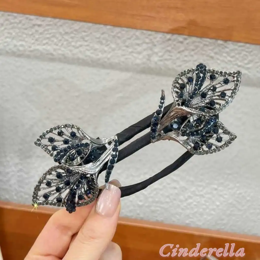 Lale Model Siyah Taşlı Kolay Toplanabilir Kadın Topuz Tokası - Kabarık ve Gür Saç için Moda Saç Toka