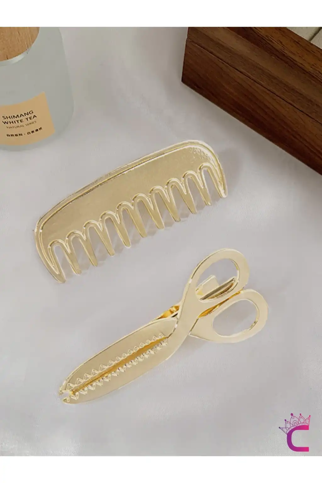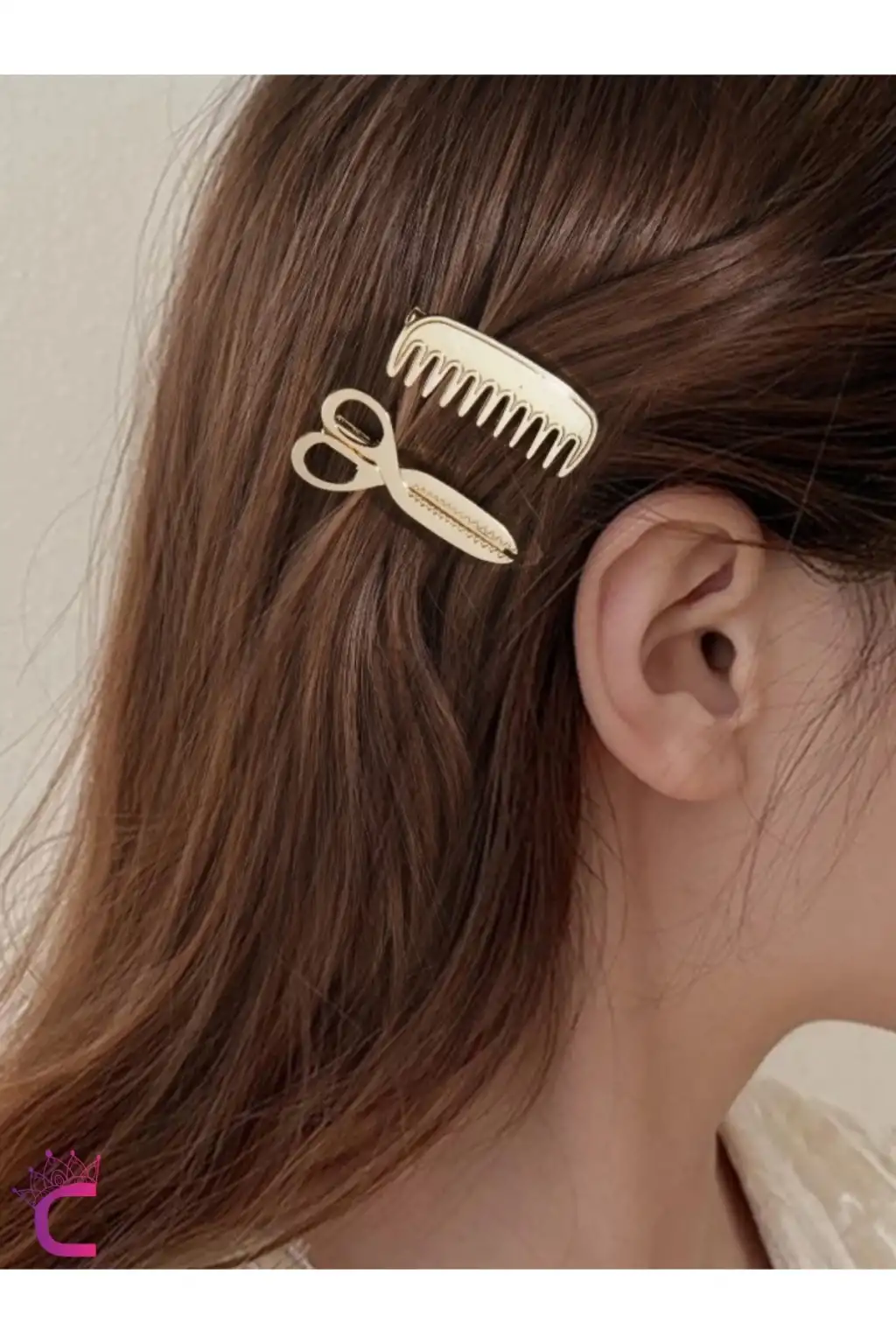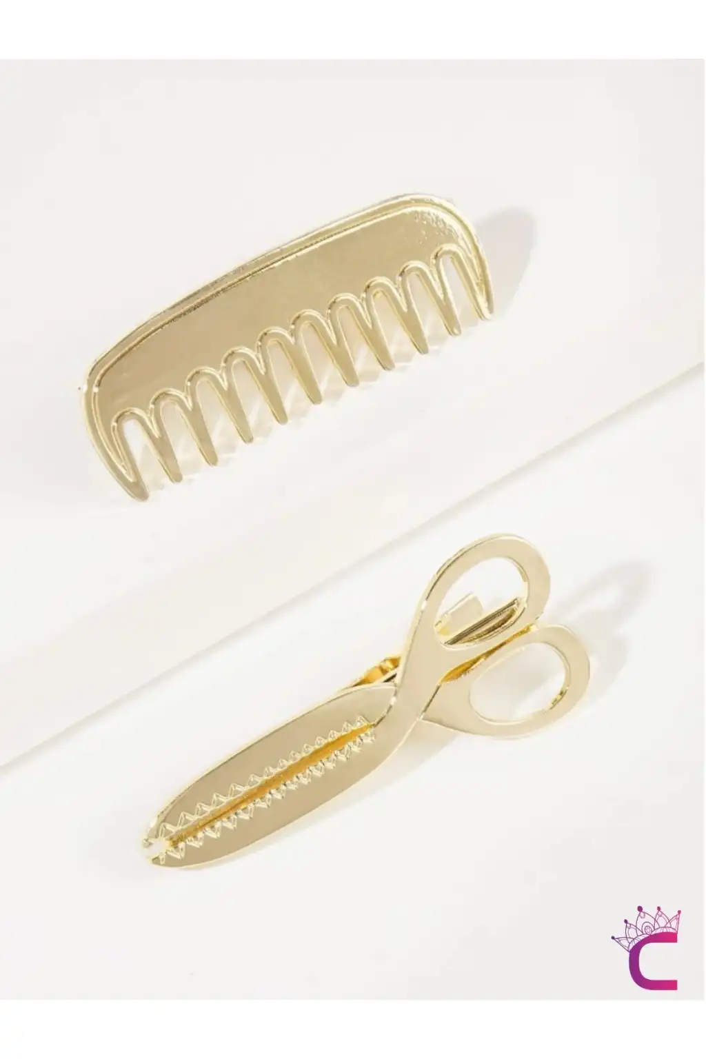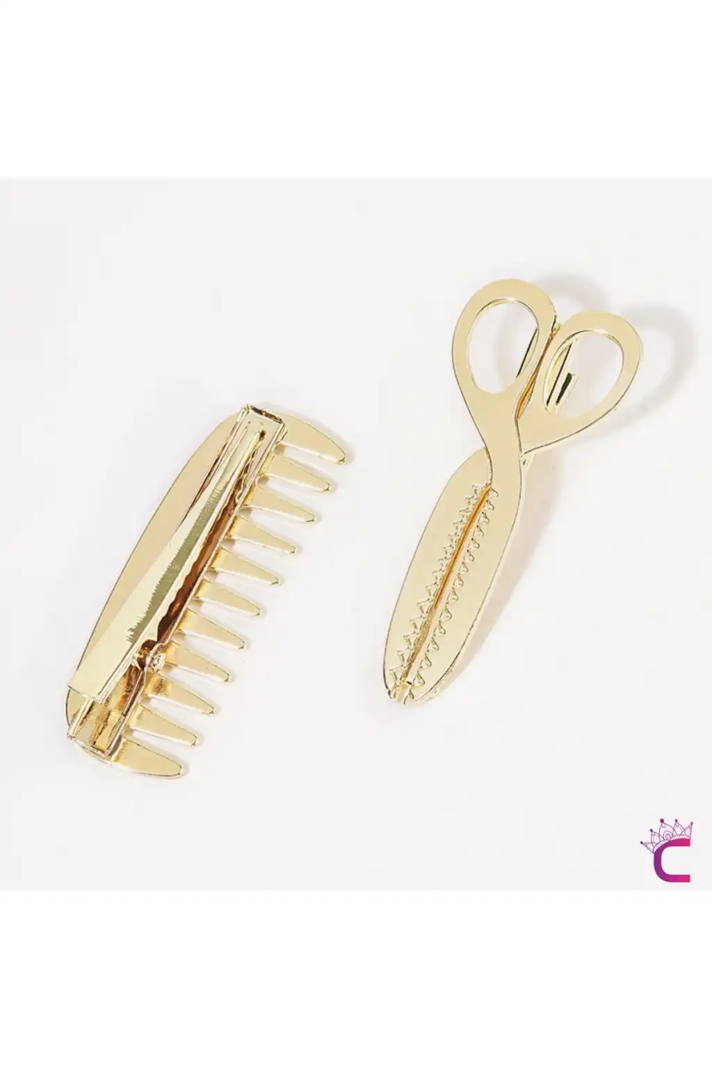 Makas ve Tarak Tasarım Metal Gold Pens Toka Seti 5cm - Yaratıcı Y2k Klipsli Yan Saç Tokası