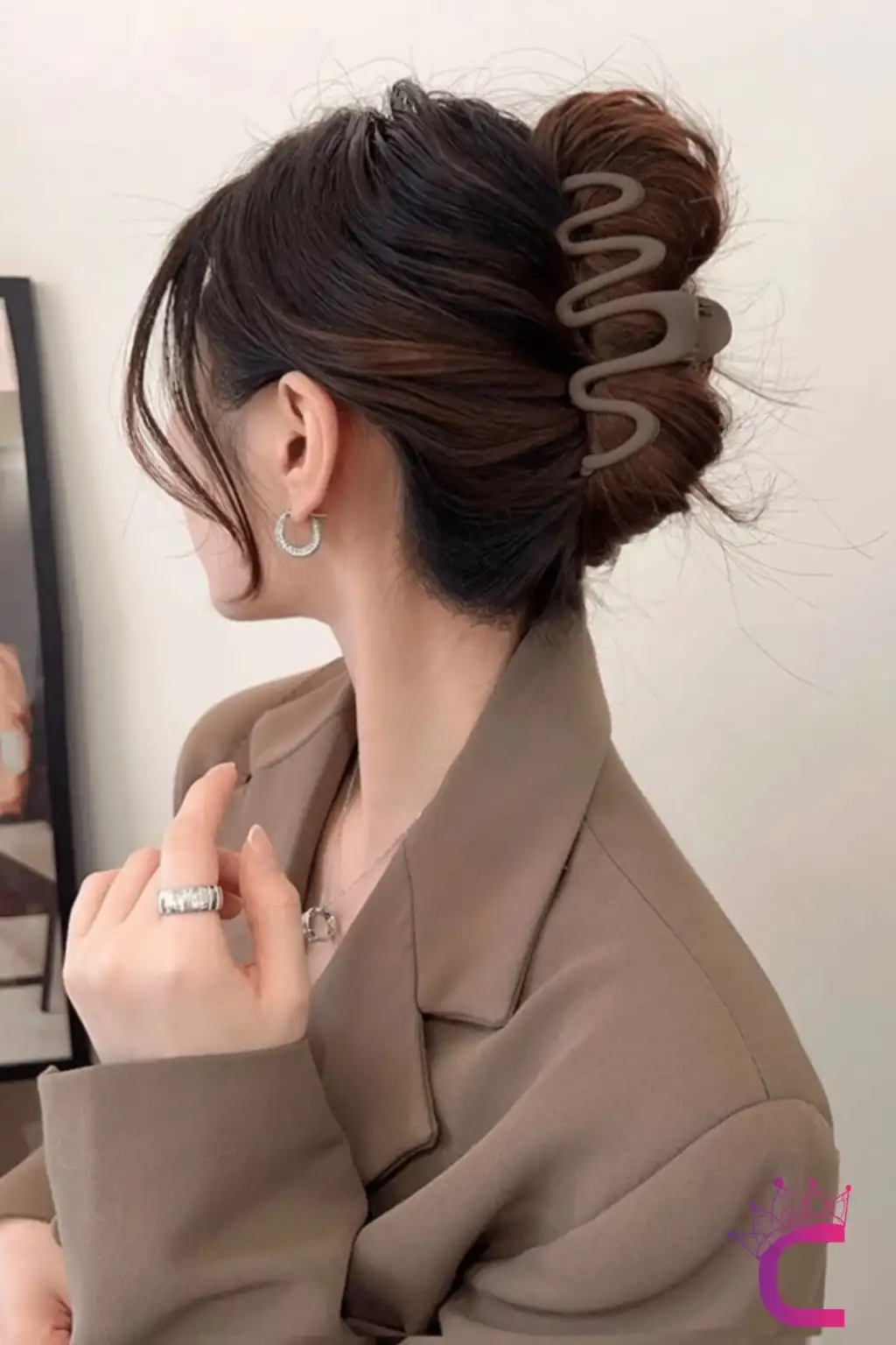 - Mat kahverengi tonlarındaki bu büyük boy mandal toka, şıklığınızı tamamlar ve zarif bir görünüm sunar.