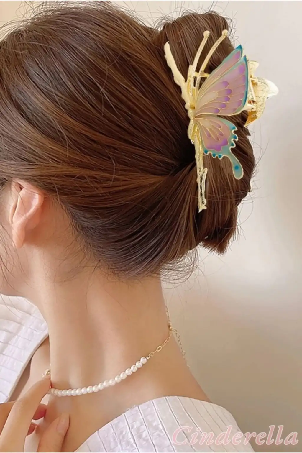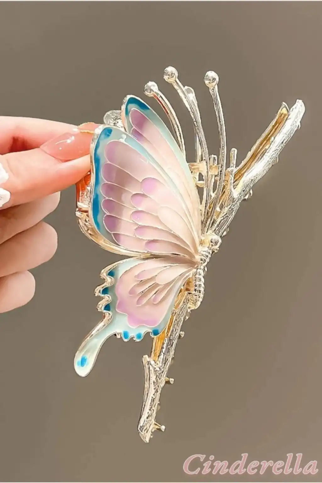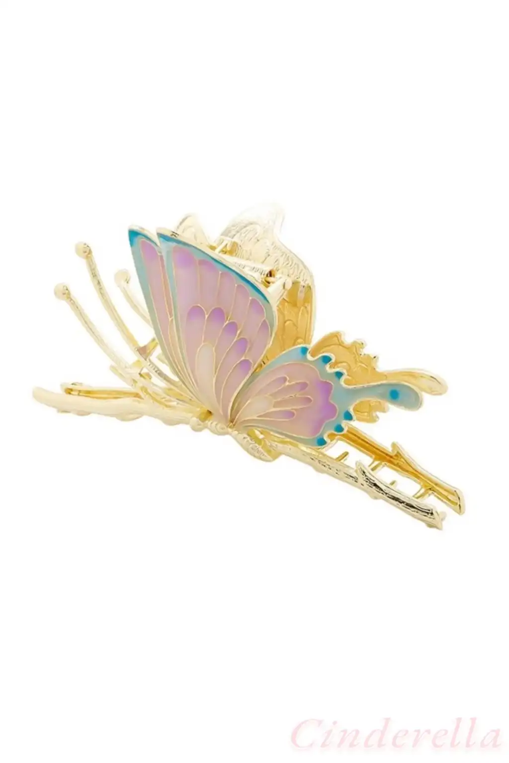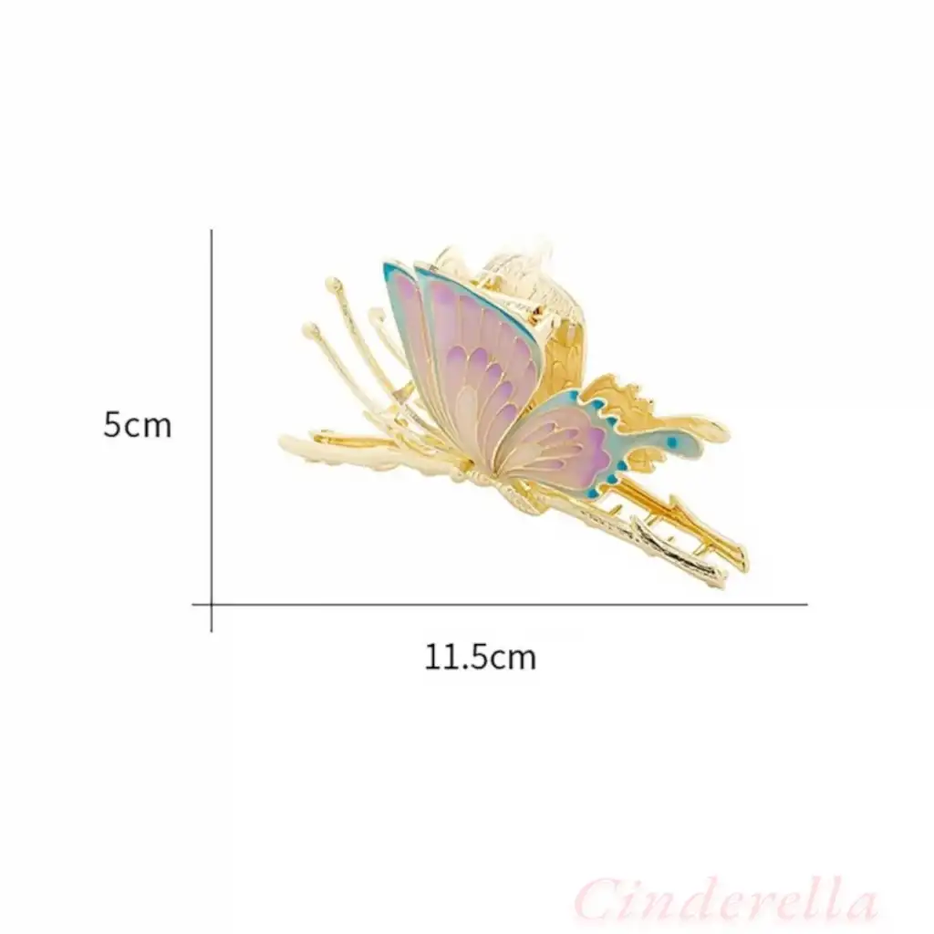 Mineli Kelebek Tasarım Kadın Büyük Metal Mandal Toka Gold - Boho Tarz Mandallı Saç Topuz Tokası