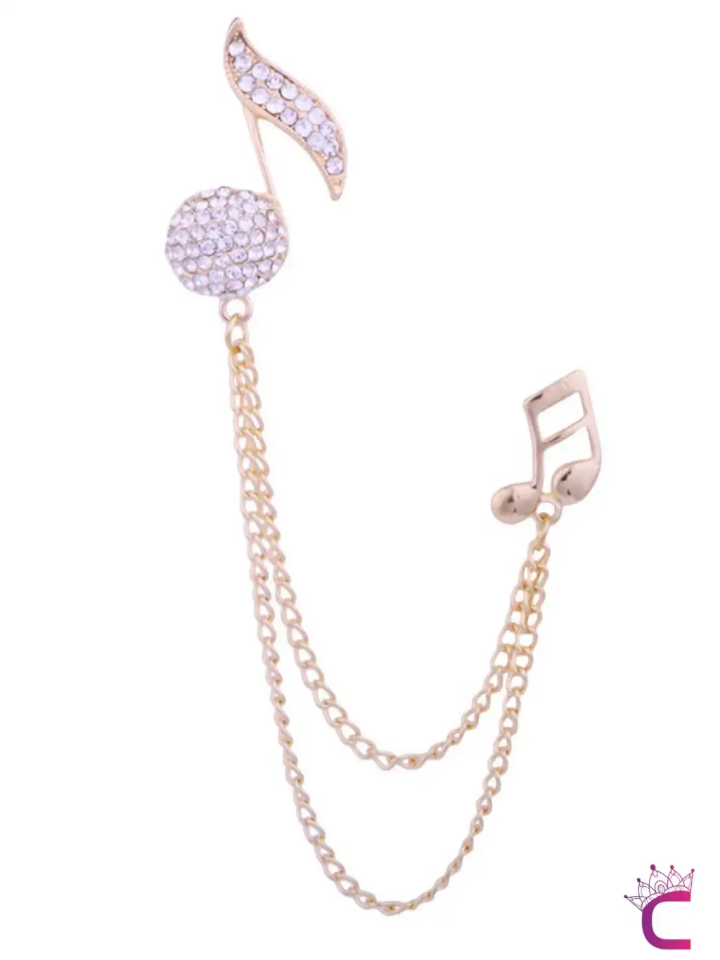 Müzik Notası Zirkon Taşlı Zincirli Broş Gold - Hediyelik Damat Yaka Zinciri Ceket Kıyafet İğnesi