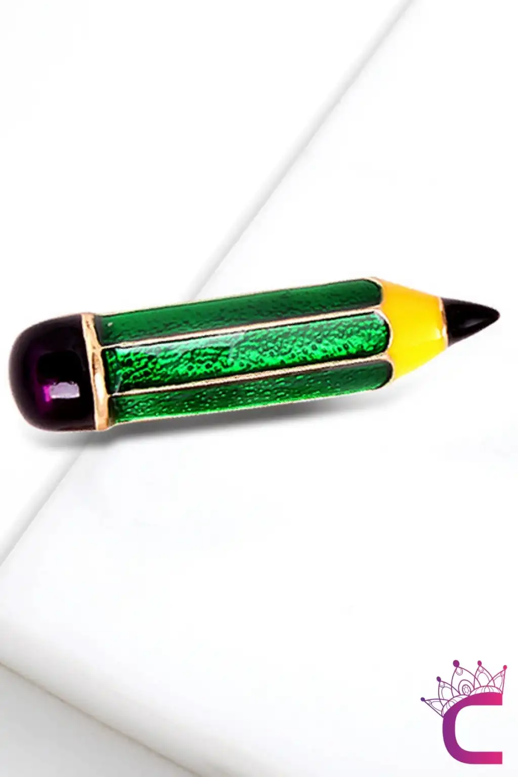 Öğretmen & Öğrenci Yeşil Kalem Broş Metal - Hediyelik Öğretmenler Günü Broş Ceket Yaka İğnesi Broşu