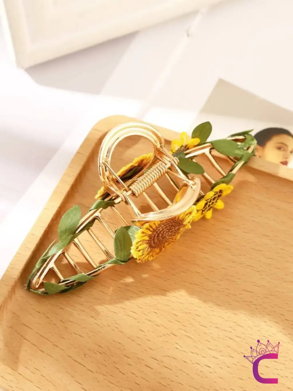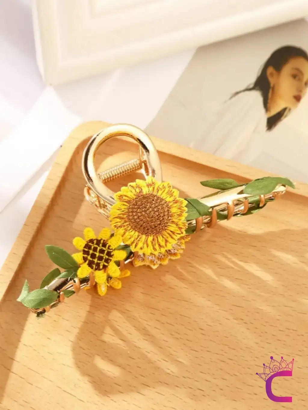 - Zarif tasarımıyla dikkat çeken örgü ayçiçeği yaprağı motifli mandal toka, saç stilinizi şık bir dokunuşla tamamlar.