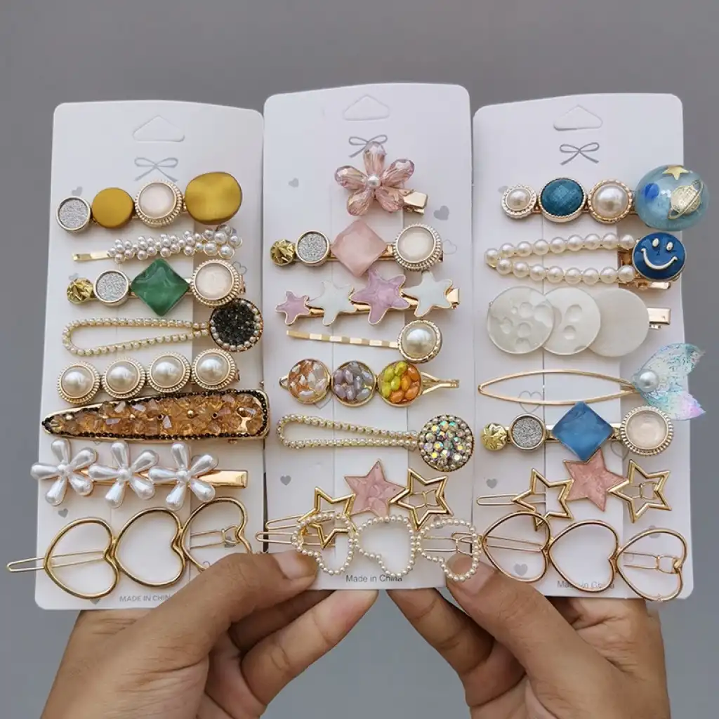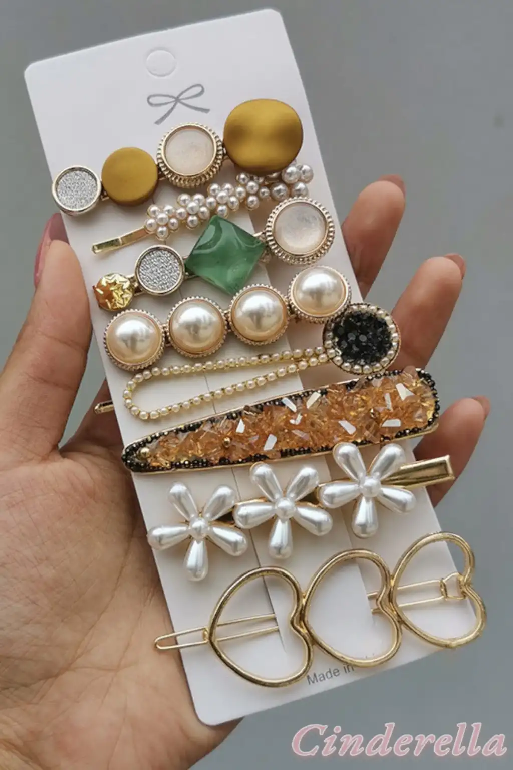 Özel 8'li Kadın İç İçe Kalpli İnci Taşlı Toka Seti - Yeni Sezon Pens Çıtçıtlı Klips Yan Saç Tokası