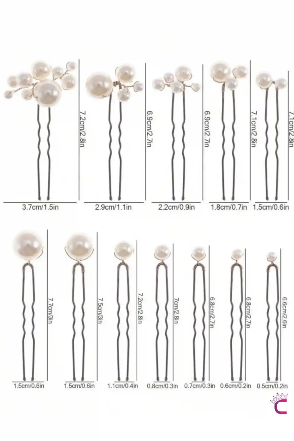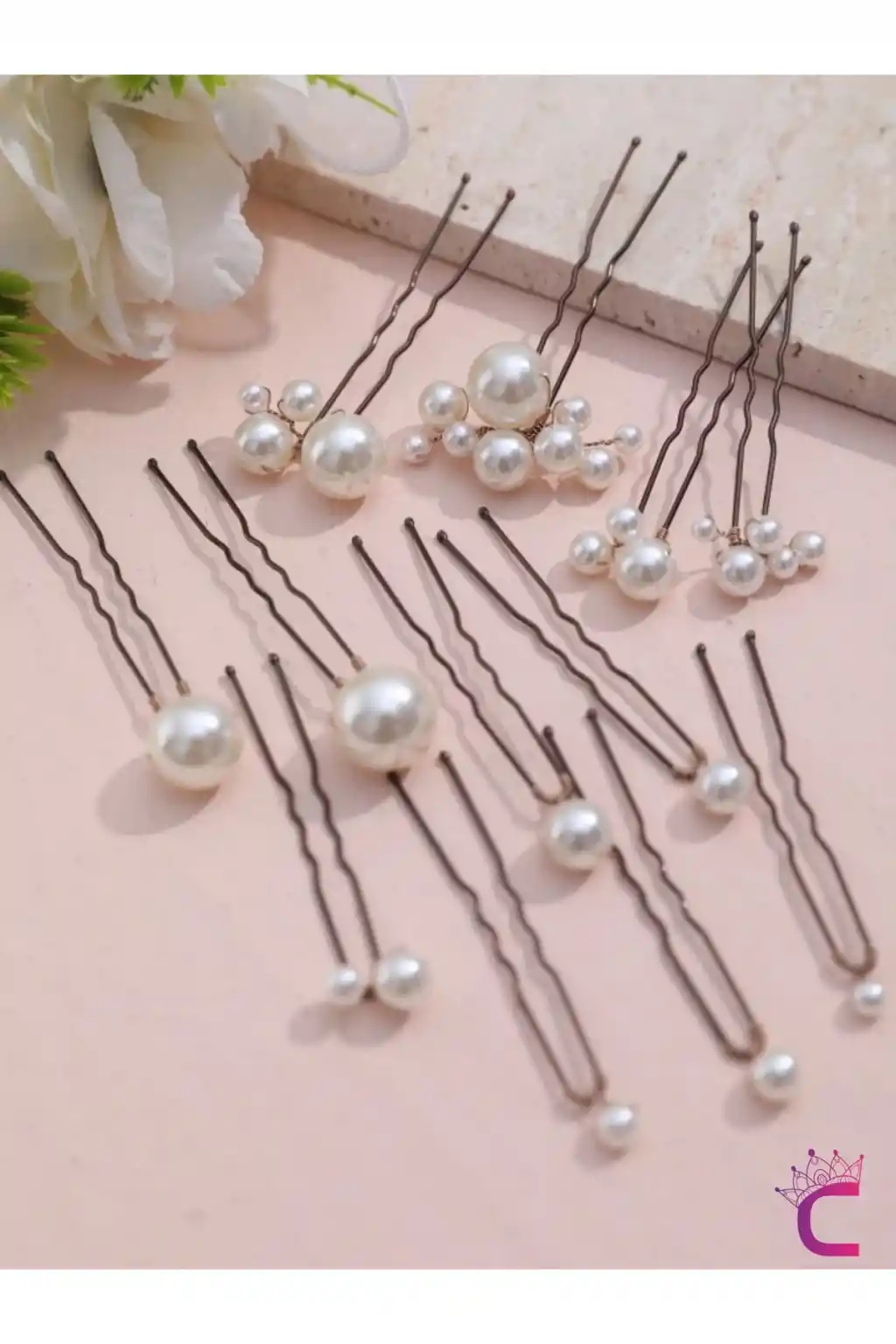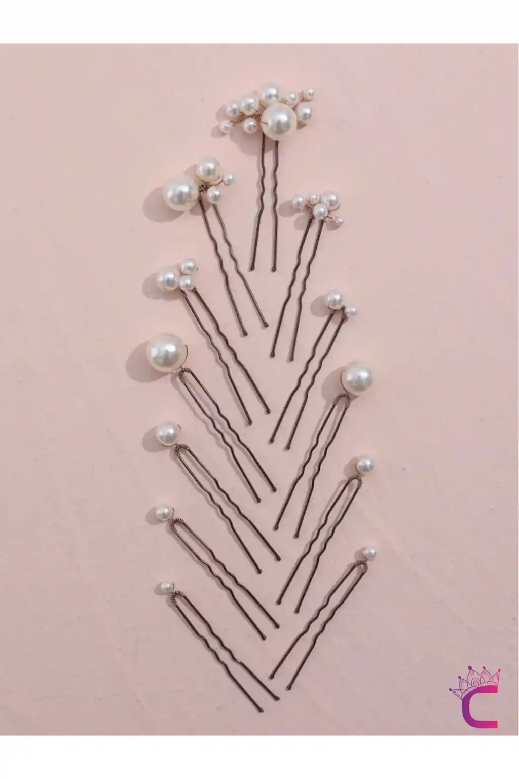 10'lu Mini Kristal Taşlı Çiçek Tasarım Firkete Toka Gümüş - Düğün Nikah Saç Aksesuarı Topuz Tokası
