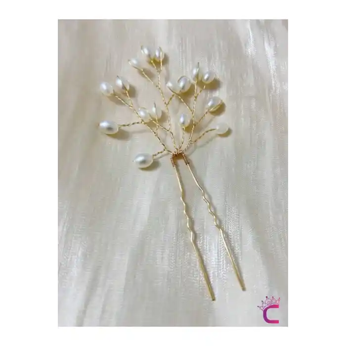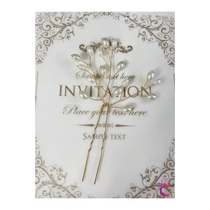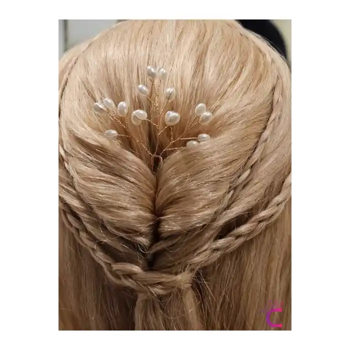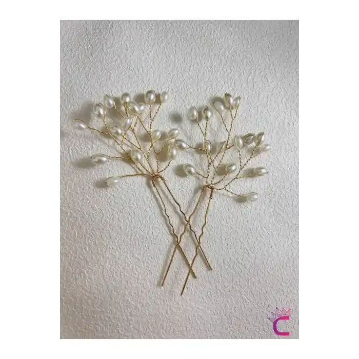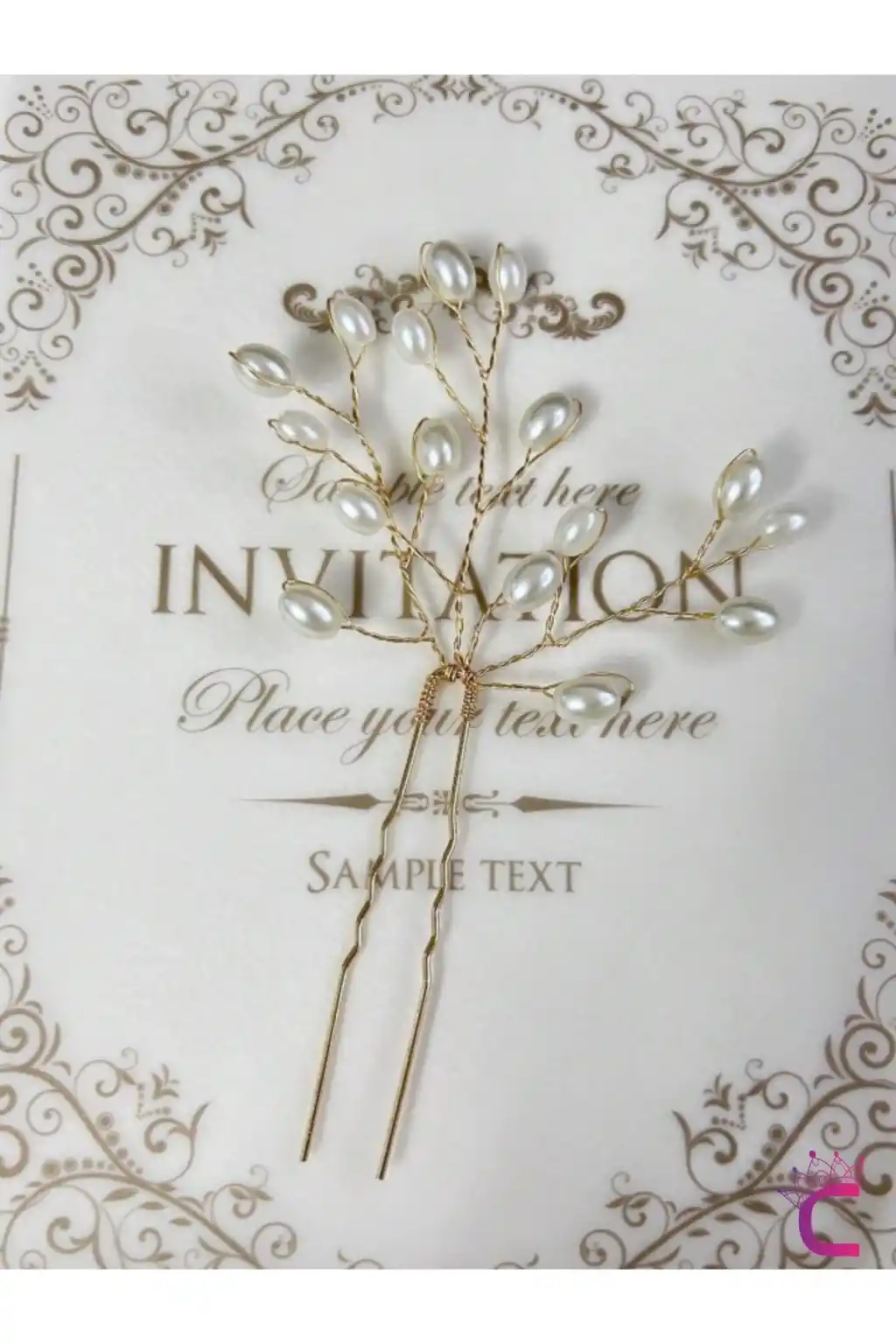 2'li Zarif İncili Sedef Çiçekli Gelin Tacı Firkete Toka Gold - Düğün Nişan Nikah Söz Saç Aksesuarı