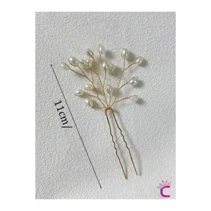 5'li Zarif Beyaz Sedef İnci Çiçekli Gold Yaprak Gelin Tacı Firkete Toka - Düğün Saç Topuz Tokası