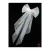 Zarif Beyaz Çiçekli İncili Gelin Tacı Gümüş - Helen Saç Bandı Topuz Tokası Düğün Nişan Aksesuarı