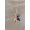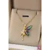 Zarif Arı Tasarım Gömlek Yaka Zinciri Broş - Hediyelik Zirkon Taşlı Gold Zincirli Ceket Yaka İğnesi